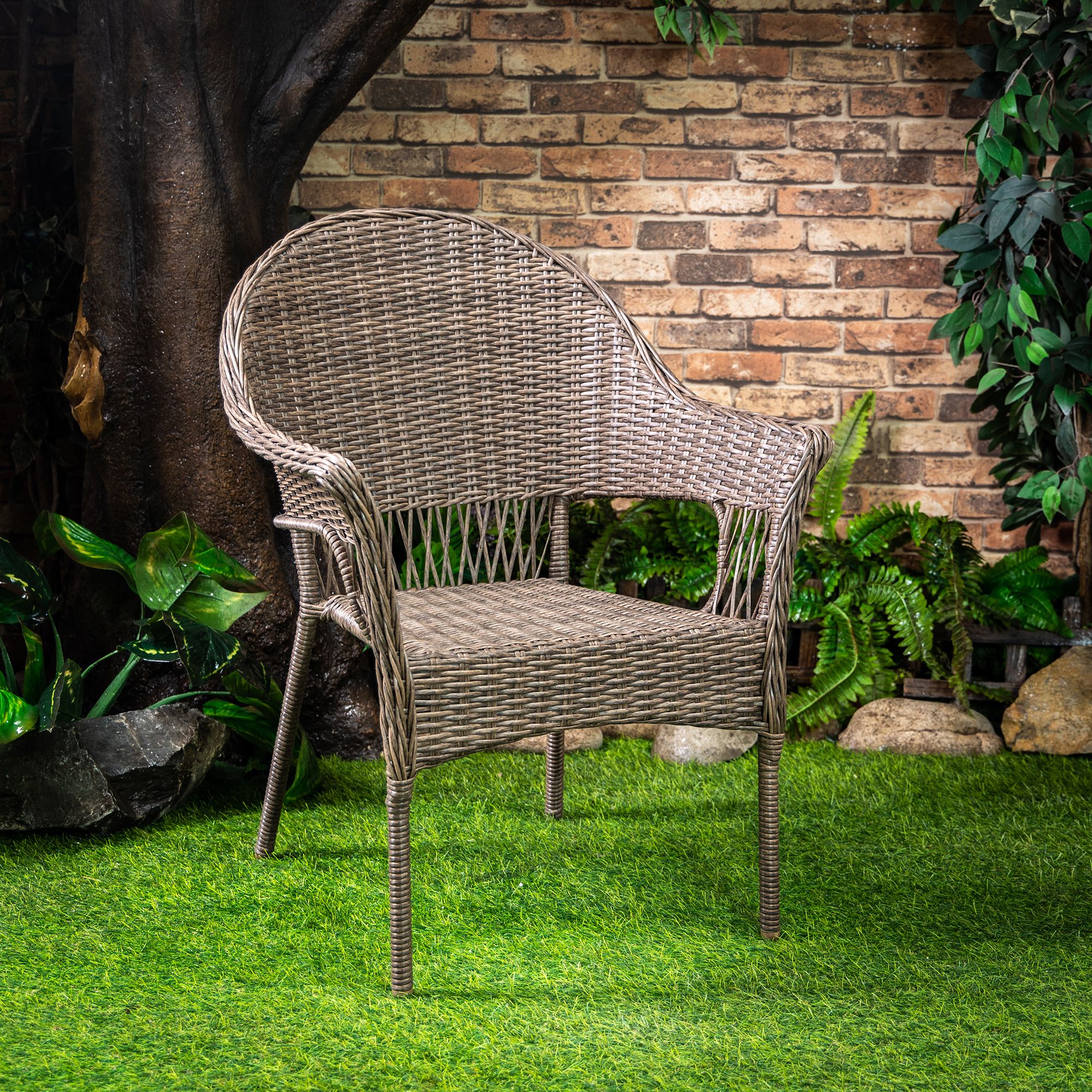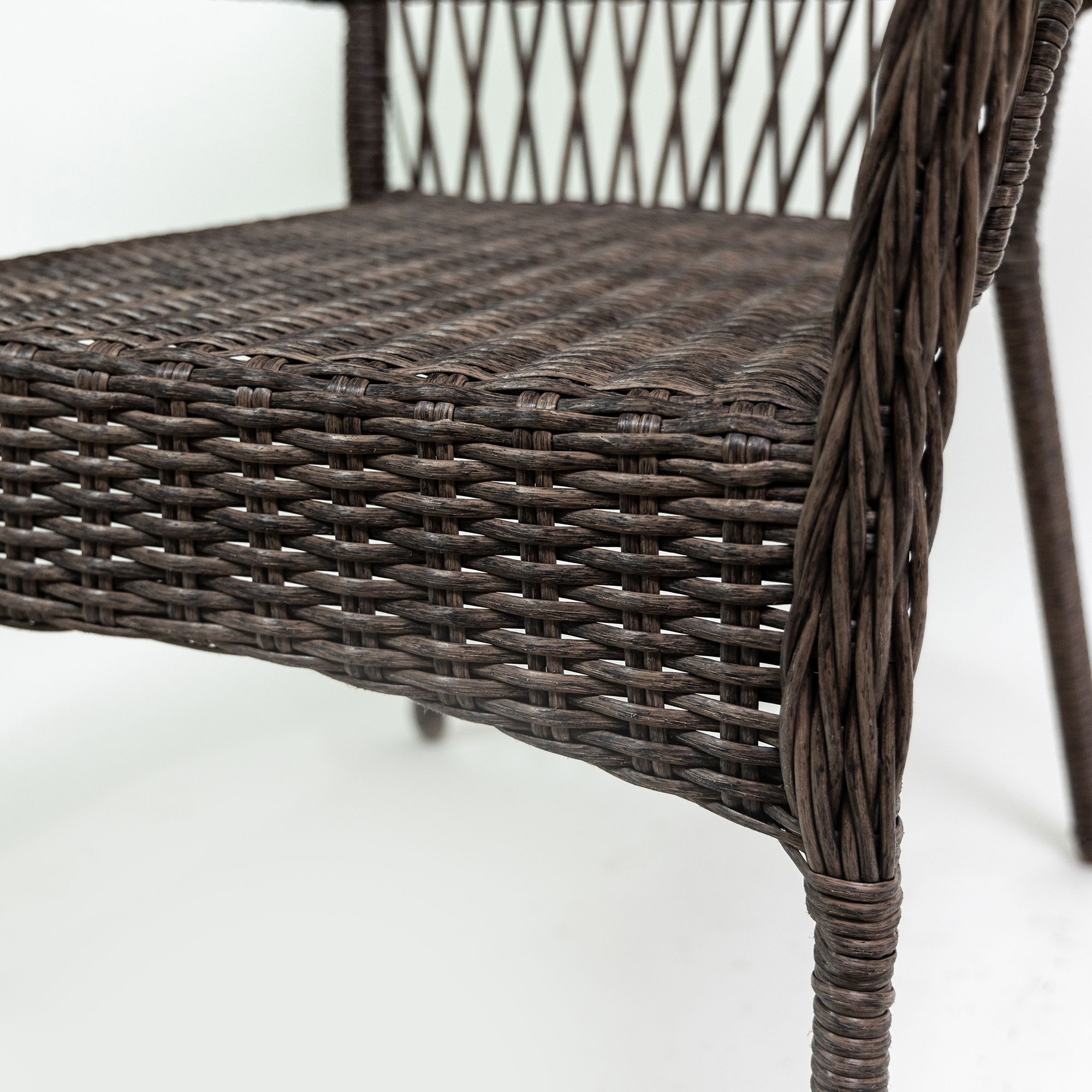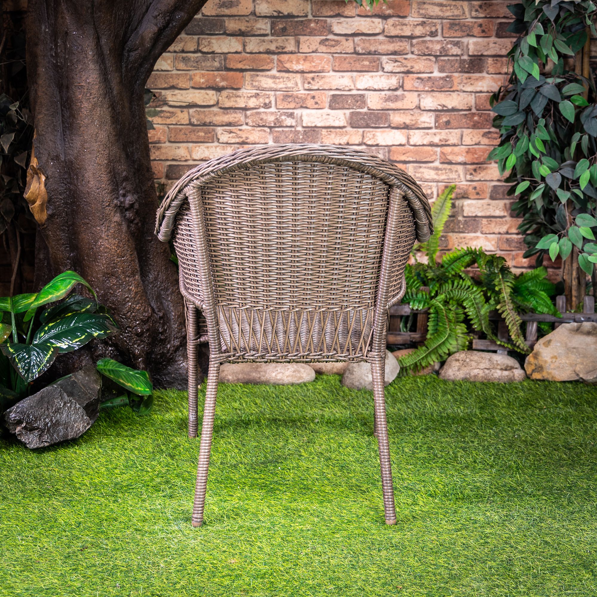 The Berkley Jensen Wicker Stackable Chair will add style and comfort to your outdoor living space. With sleek lines and elegant curves, this chair adds style without distracting from the natural beauty of the outdoors. The neutral brown color is designed to integrate with any decor, while providing comfort while relaxing with family and friends by the pool or around a dining table or a fire pit. Made of sturdy polyethylene rattan and aluminum frame, this chair is weather resistant and will hold up against the elements. Woven wicker provides superior strength, and the support of the aluminum frame keeps this chair looking great for years to come. Due to its polypropylene rattan construction, this chair is very easy to maintain, just wipe clean and dry. You will never have to worry about rust, so you can safely leave it outdoors in all types of weather.