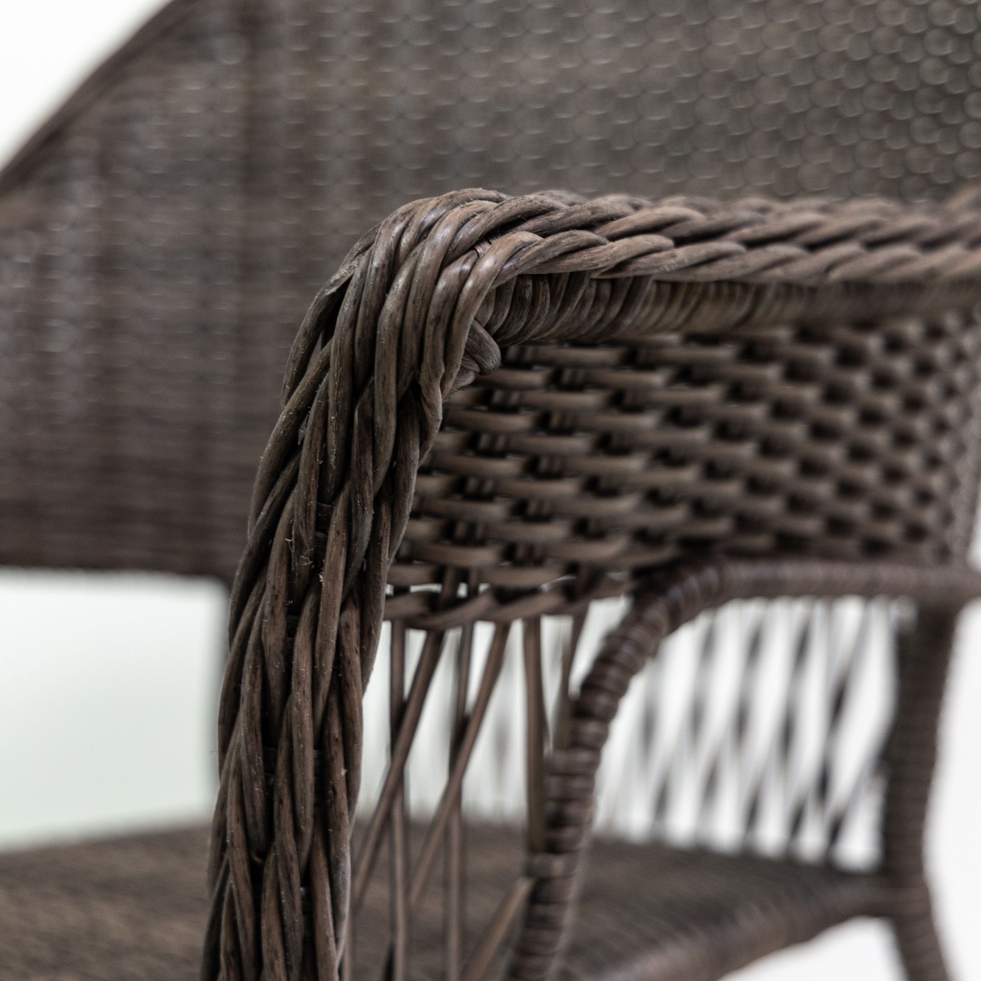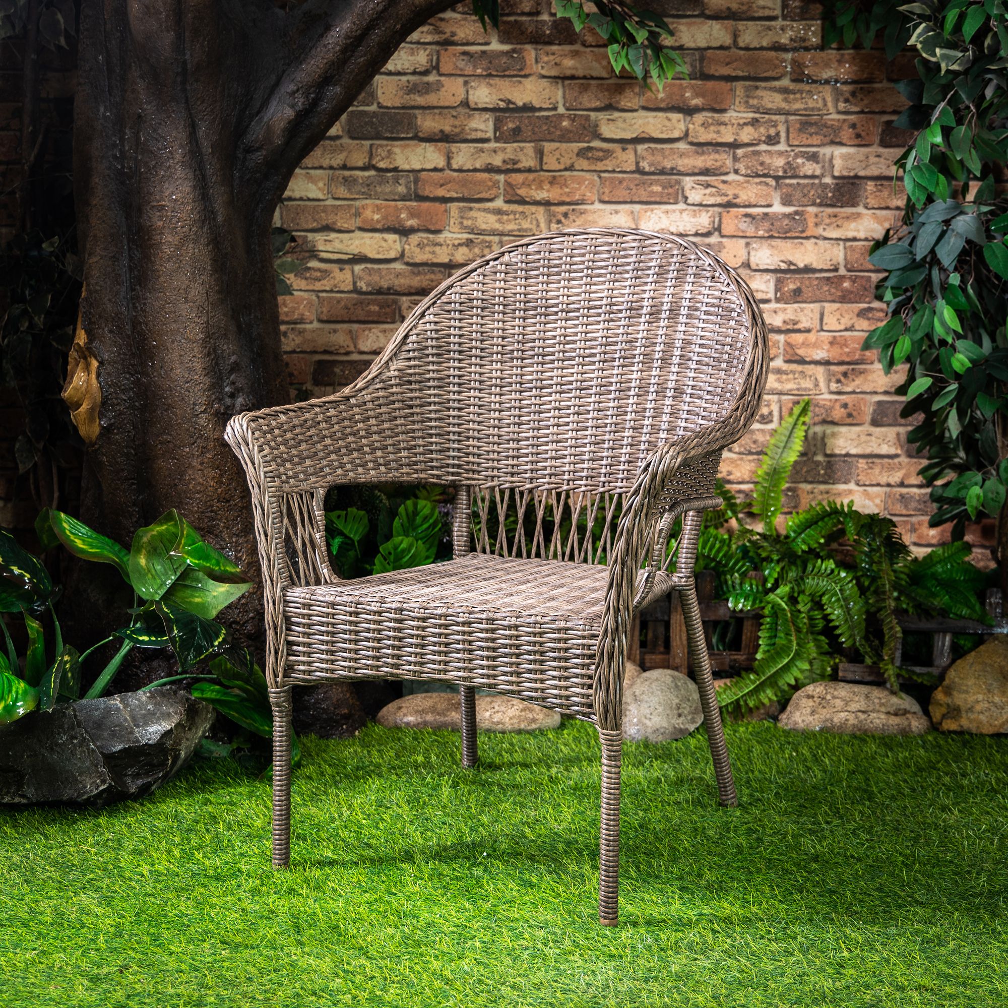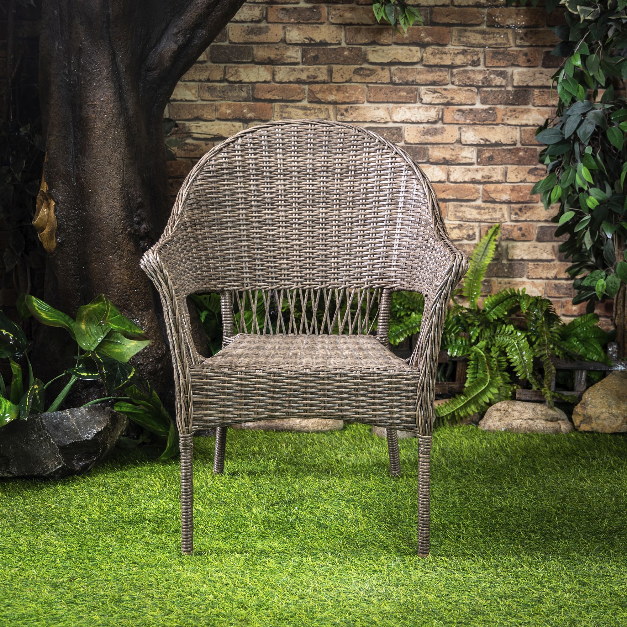 The Berkley Jensen Wicker Stackable Chair will add style and comfort to your outdoor living space. With sleek lines and elegant curves, this chair adds style without distracting from the natural beauty of the outdoors. The neutral brown color is designed to integrate with any decor, while providing comfort while relaxing with family and friends by the pool or around a dining table or a fire pit. Made of sturdy polyethylene rattan and aluminum frame, this chair is weather resistant and will hold up against the elements. Woven wicker provides superior strength, and the support of the aluminum frame keeps this chair looking great for years to come. Due to its polypropylene rattan construction, this chair is very easy to maintain, just wipe clean and dry. You will never have to worry about rust, so you can safely leave it outdoors in all types of weather.