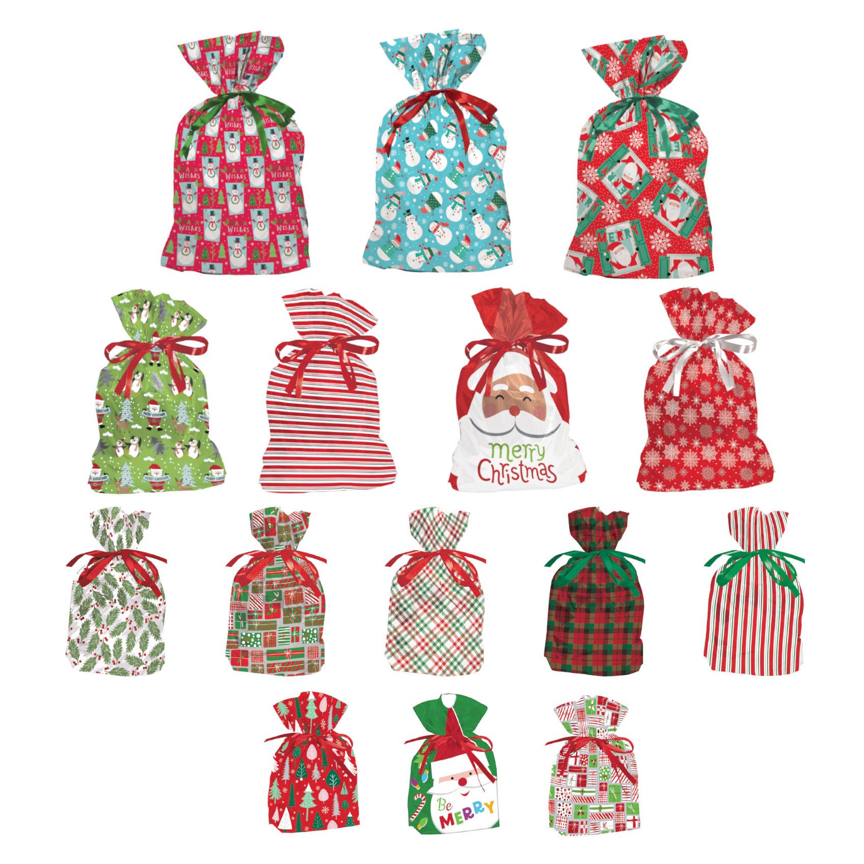 Each package contains 15 seasonal gift bags in a variety of sizes, including four different sizes. The gift bags include 15 different beautiful art designs of traditional, whimsical, and plaid to pick from for your holiday gift-giving.
