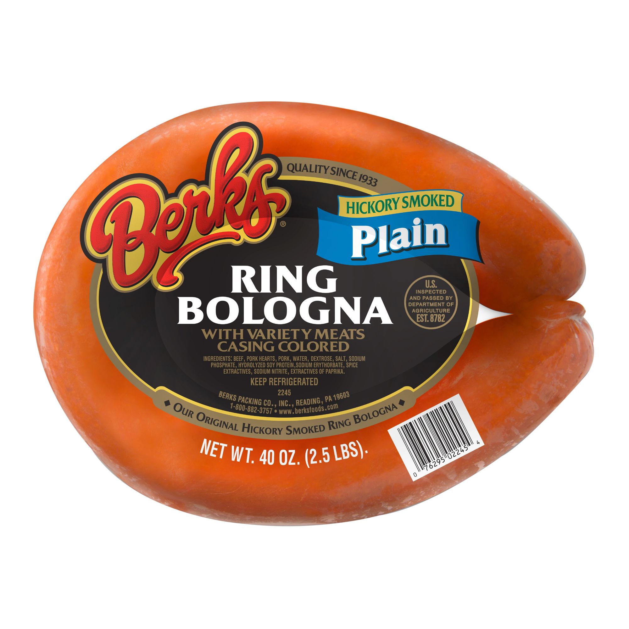 Berks plain ring bologna is made from a proprietary blend of seasonings and lean cuts of 100% domestic fresh beef and pork. The same old-world recipe Berks has been using for 85 years for a delicious flavor. This is great for lunch, snacks, or tasty hors d’oeuvres.