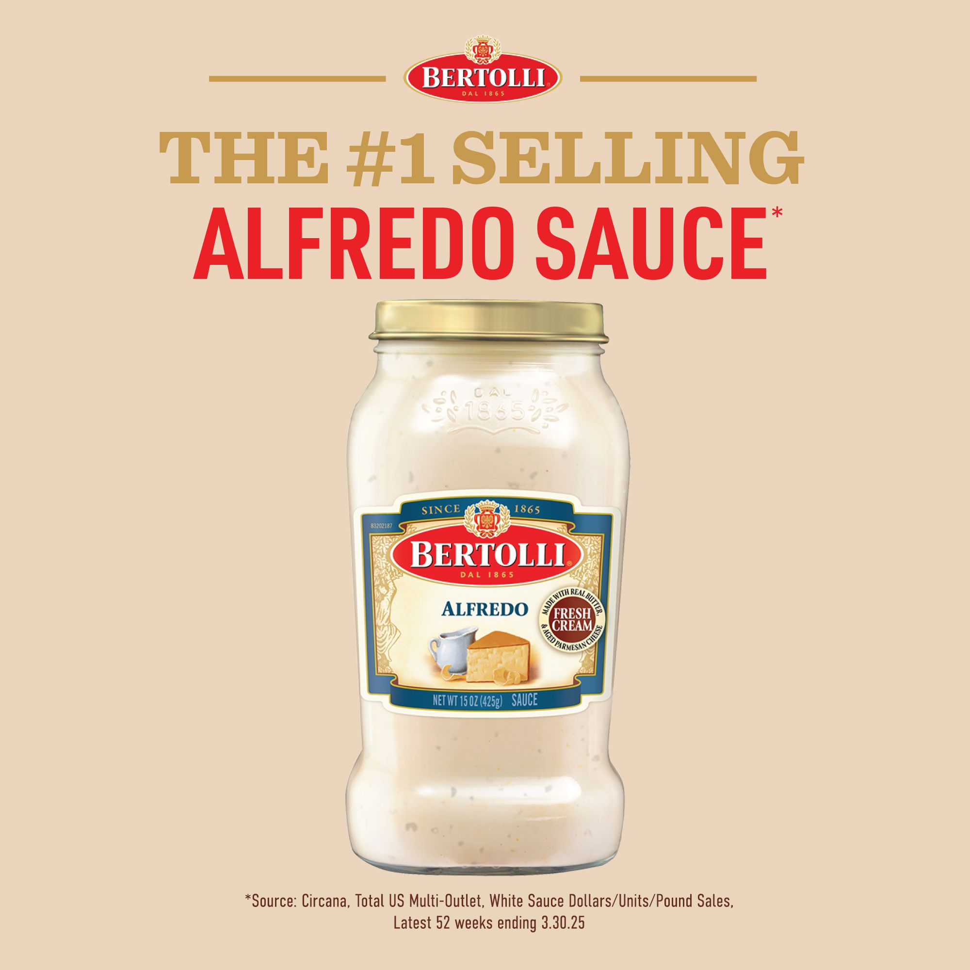 Simple is the Bertolli way. Enjoy authentic flavors with a 15 oz. jar of Bertolli Alfredo Pasta Sauce with Aged Parmesan. Crafted from aged parmesan cheese, real butter, and fresh cream, this white pasta sauce brings timeless flavors to your table effortlessly. It's perfect for easy, delicious meals like Alfredo Tortellini, Alfredo Primavera, and Pizza al Forno. Elevate your dining experience with appetizers like flatbreads, crostini, and soups to entertain at home, or pour the spaghetti Alfredo sauce over cooked noodles for an elevated weeknight meal. Since 1865, Bertolli has made cooking simple and delightful. Experience the rich taste of culinary tradition with Bertolli Alfredo Sauce. Refrigerate after opening to keep it fresh.