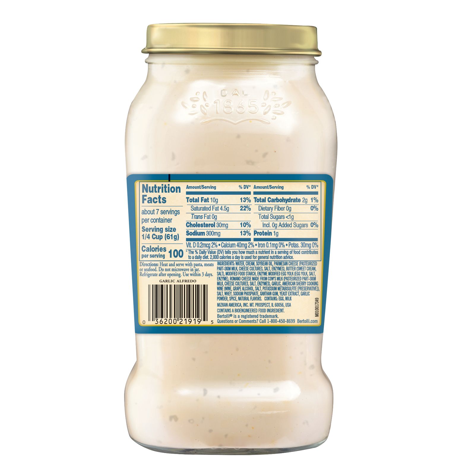 Experience the taste of Tuscany with Bertolli Alfredo Pasta Sauce. Crafted from a timeless combination of aged parmesan cheese, real butter, and fresh cream, this rich and creamy white pasta sauce brings authentic Italian flavor to your home-cooked meals. Lightly cooked to lock in layers of flavor, it’s perfect for simple Italian recipes like Alfredo Tortellini, Alfredo Primavera, and more. Pour it over cooked noodles for an elevated weeknight meal or use it to create memorable, Italian-inspired dishes. The 15 oz. shelf-stable jar serves approximately six people (1/4 cup serving size). Refrigerate it after opening to keep it fresh. Since 1865, Bertolli has been delivering Tuscan-inspired pasta sauces for delightful homemade Italian cuisine.