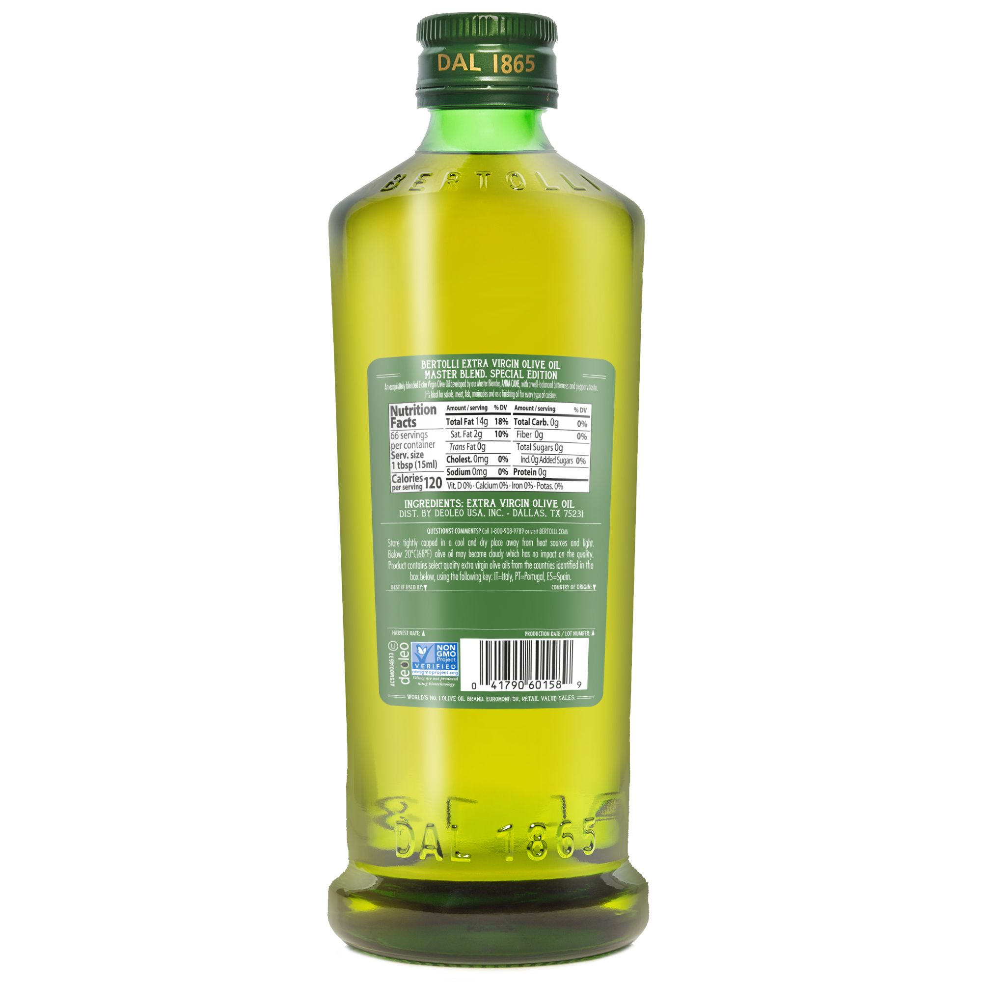 The Bertolli Master Blend is Bertolli’s new Extra Virgin Olive Oil blend that originates from selected premium cultivars around the world. These carefully picked olive oils, give the product a delicate set of attributes and its own character. The Bertolli Master Blend provides a unique aroma of fresh olive fruits, hints of tomato, artichoke and notes of green grass. The premium quality olives used in this blend are collected while still green, to accentuate their unique fruity attributes. Production areas for the olives are North Pulia in Italy, Peloponnese / Lakonia in Greece & Seville in Spain.