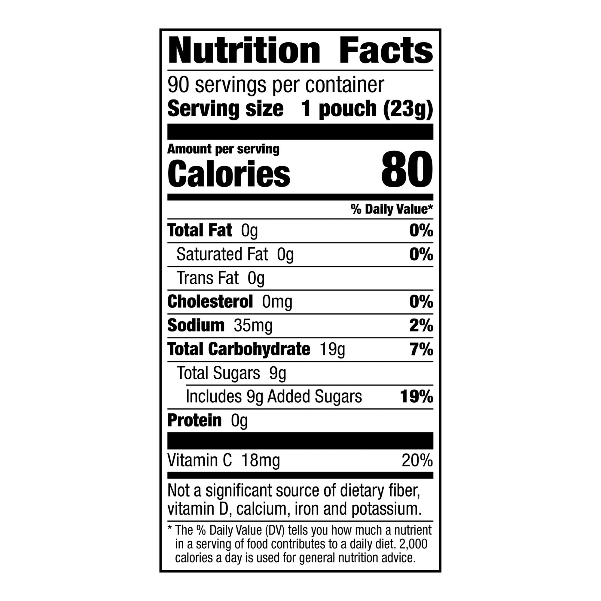 Includes fruit flavored snack packs, 90 ct./0.8 oz.