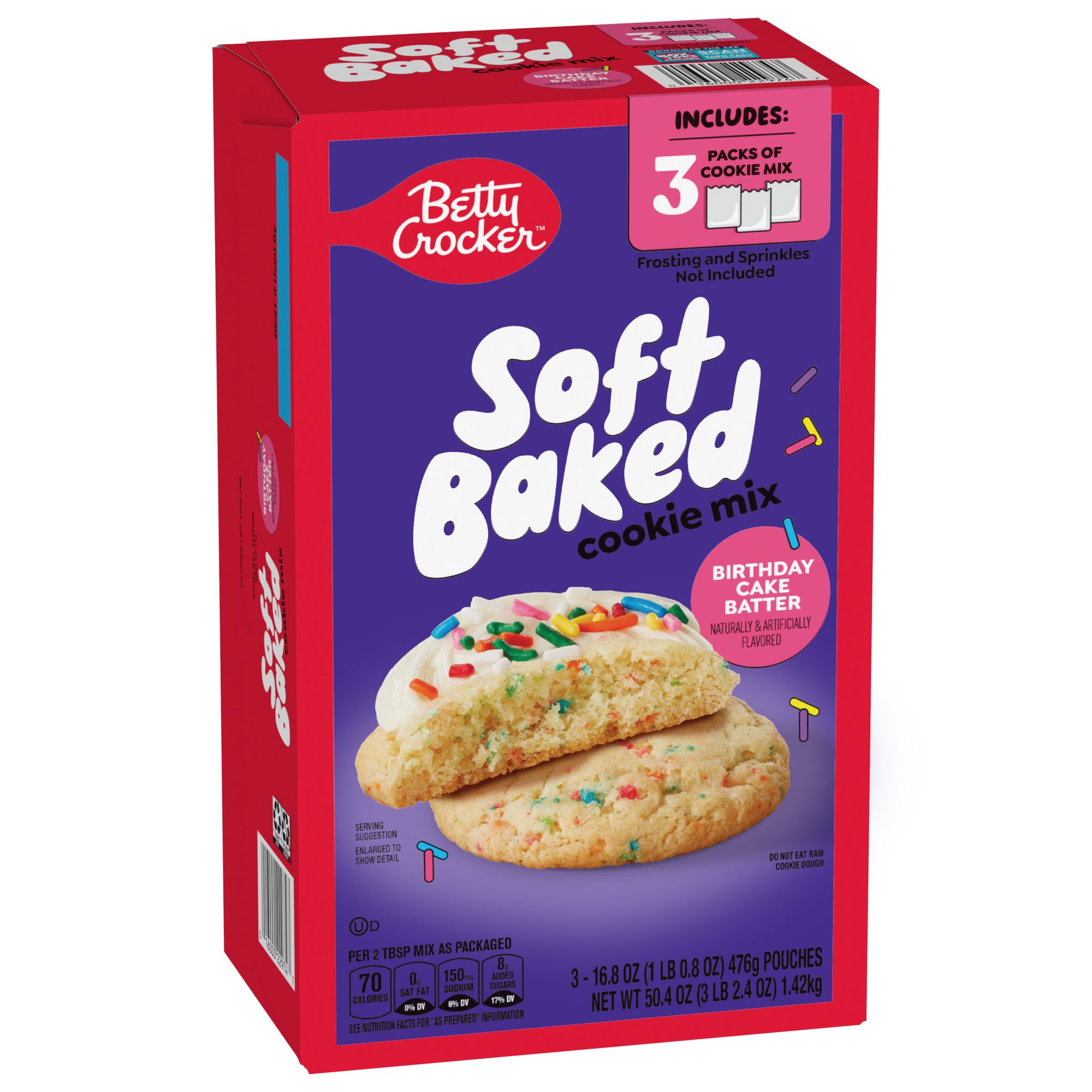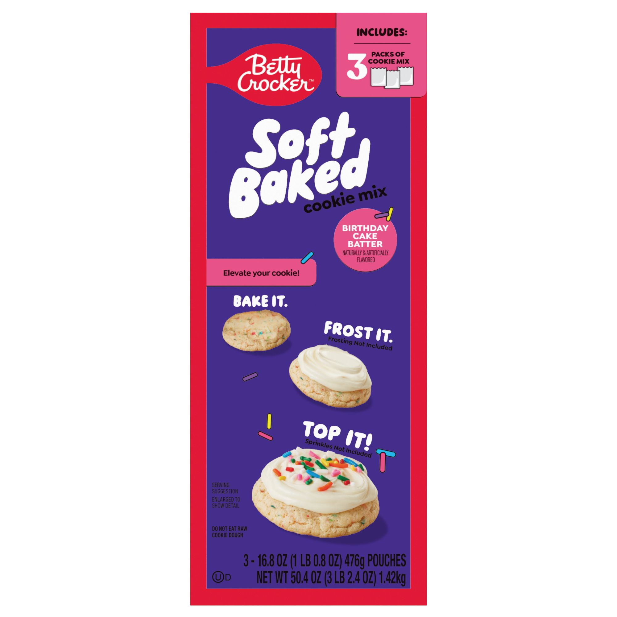 Betty Crocker Soft Baked Cookie Mix, Birthday Cake Batter Flavor Cookies, 3 pk./16.8 oz.