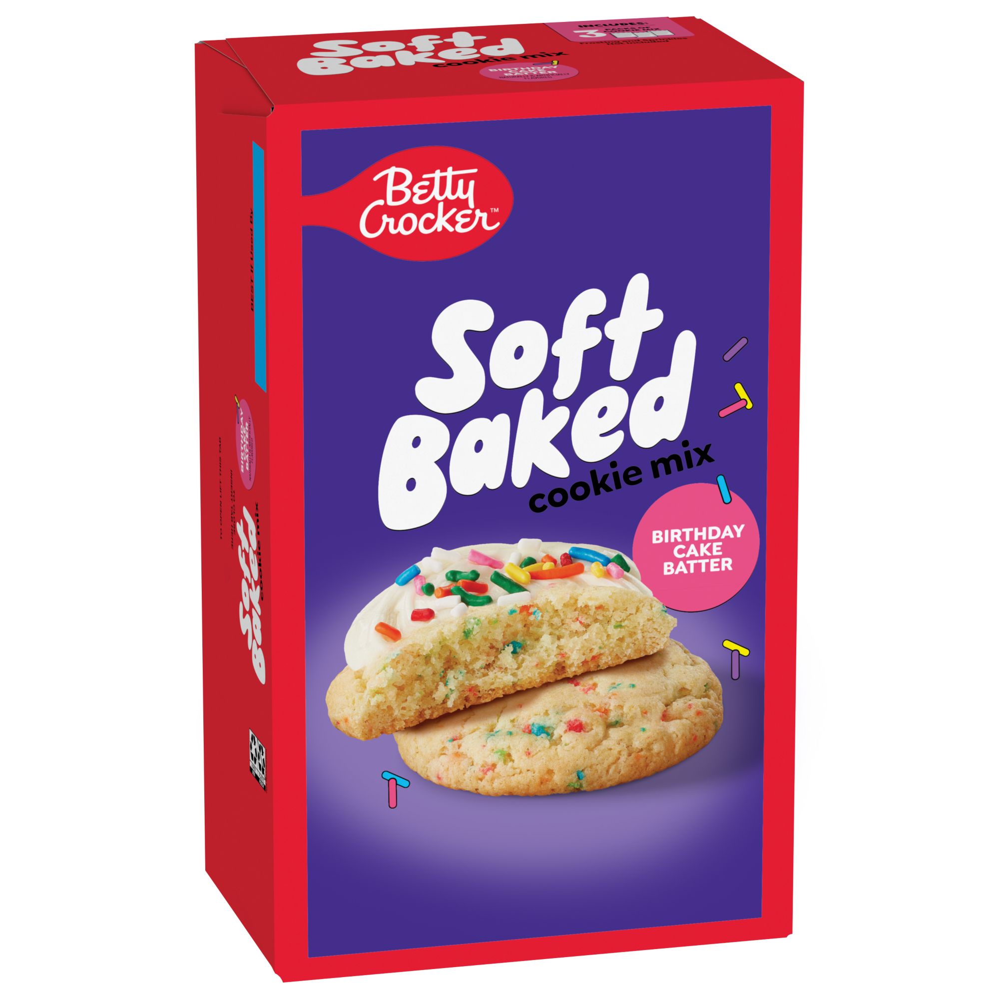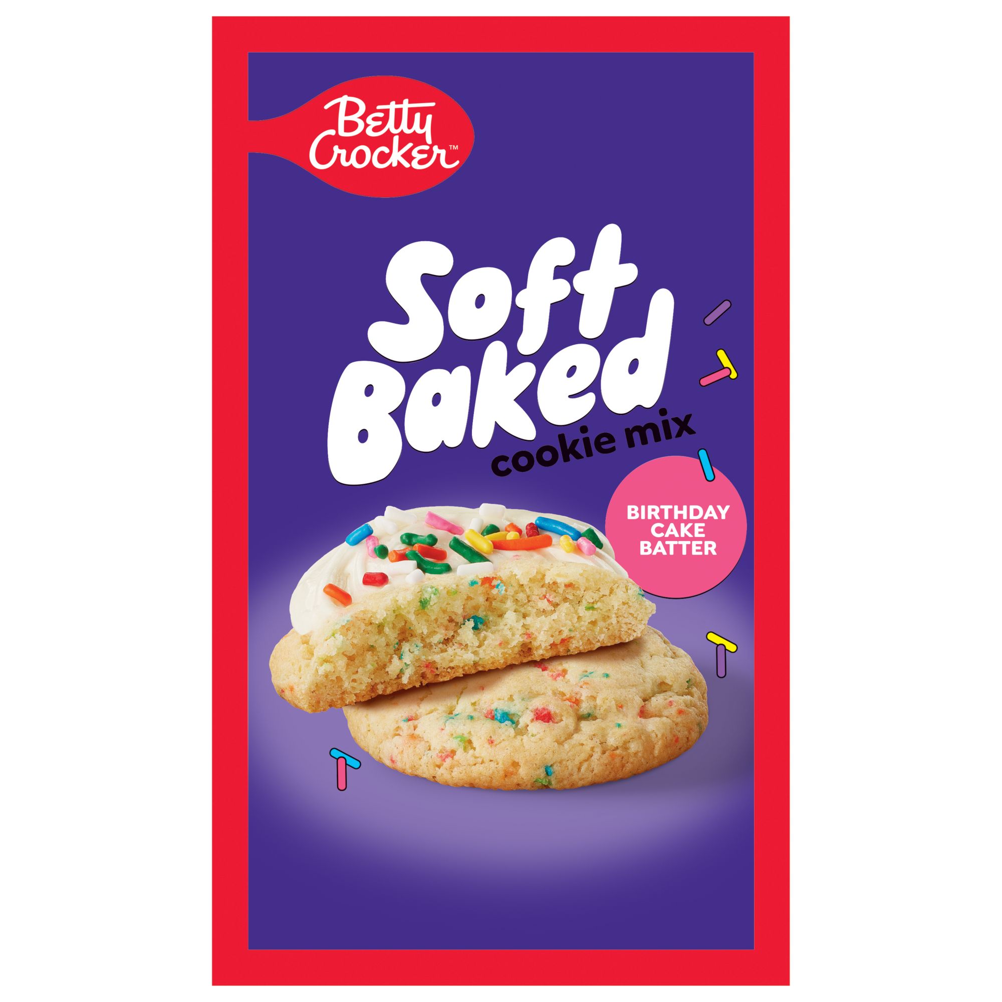 Soft baked cookie mix: Betty Crocker makes baking a batch of soft birthday cake batter flavored cookies for the family quick and convenient (Do not eat raw cookie dough)