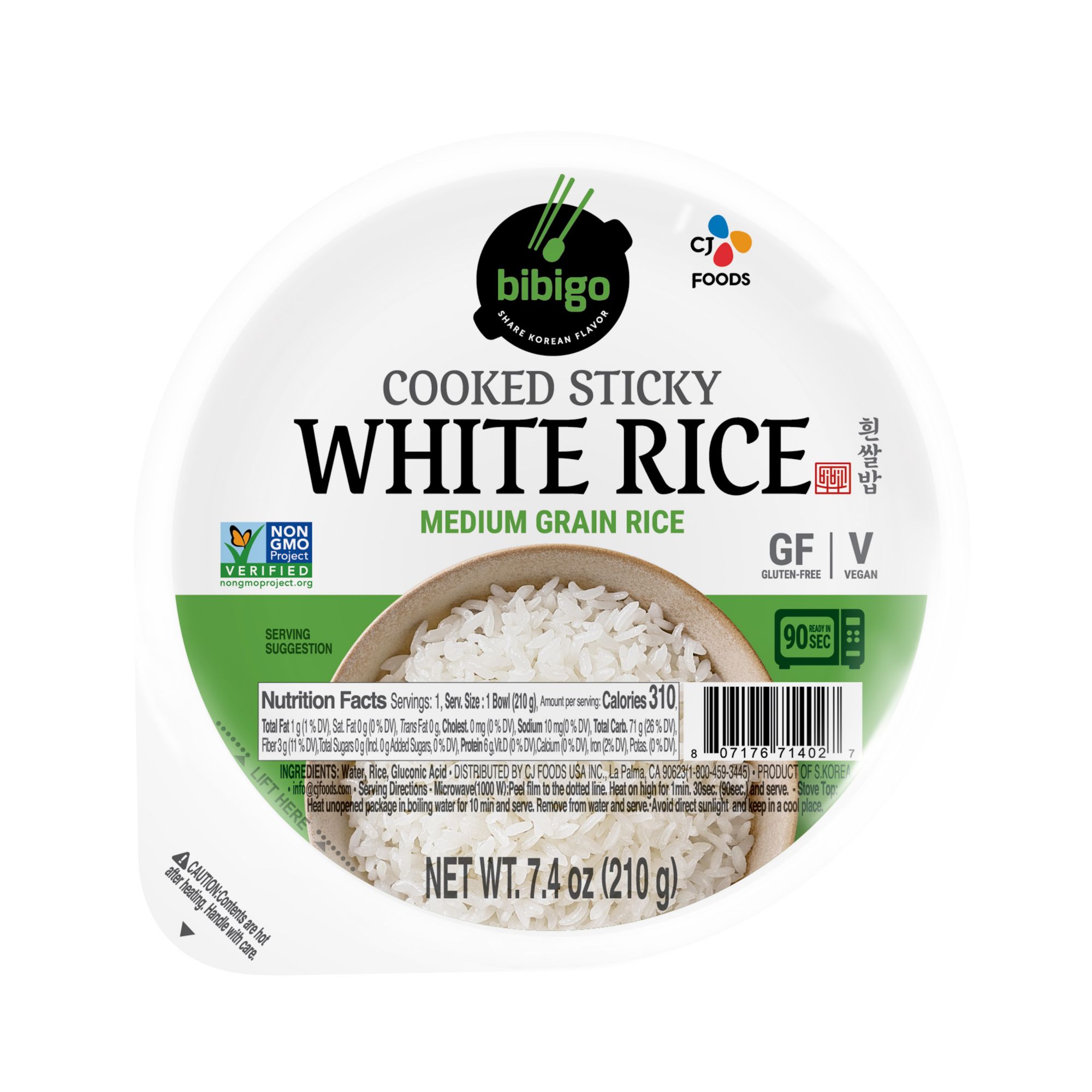 The name Bibigo comes from the Korean word to "mix", combined with "go" for an exciting line of products that are delicious and convenient. These cooked sticky rice bowls are simple to make, and definitely worth sharing. One box includes 12 individual cooked sticky rice bowls ready in just 90 seconds. Made with restaurant-style medium grain white rice, these bowls are gluten-free, low fat, and convenient for lunches and dinners.