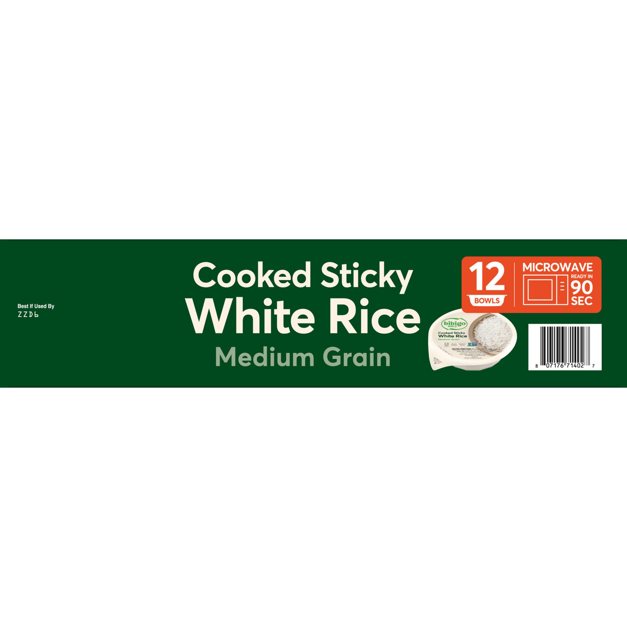 Bibigo Cooked Sticky White Rice, Medium Grain Rice, Bowls, 12 ct./7.4 oz.