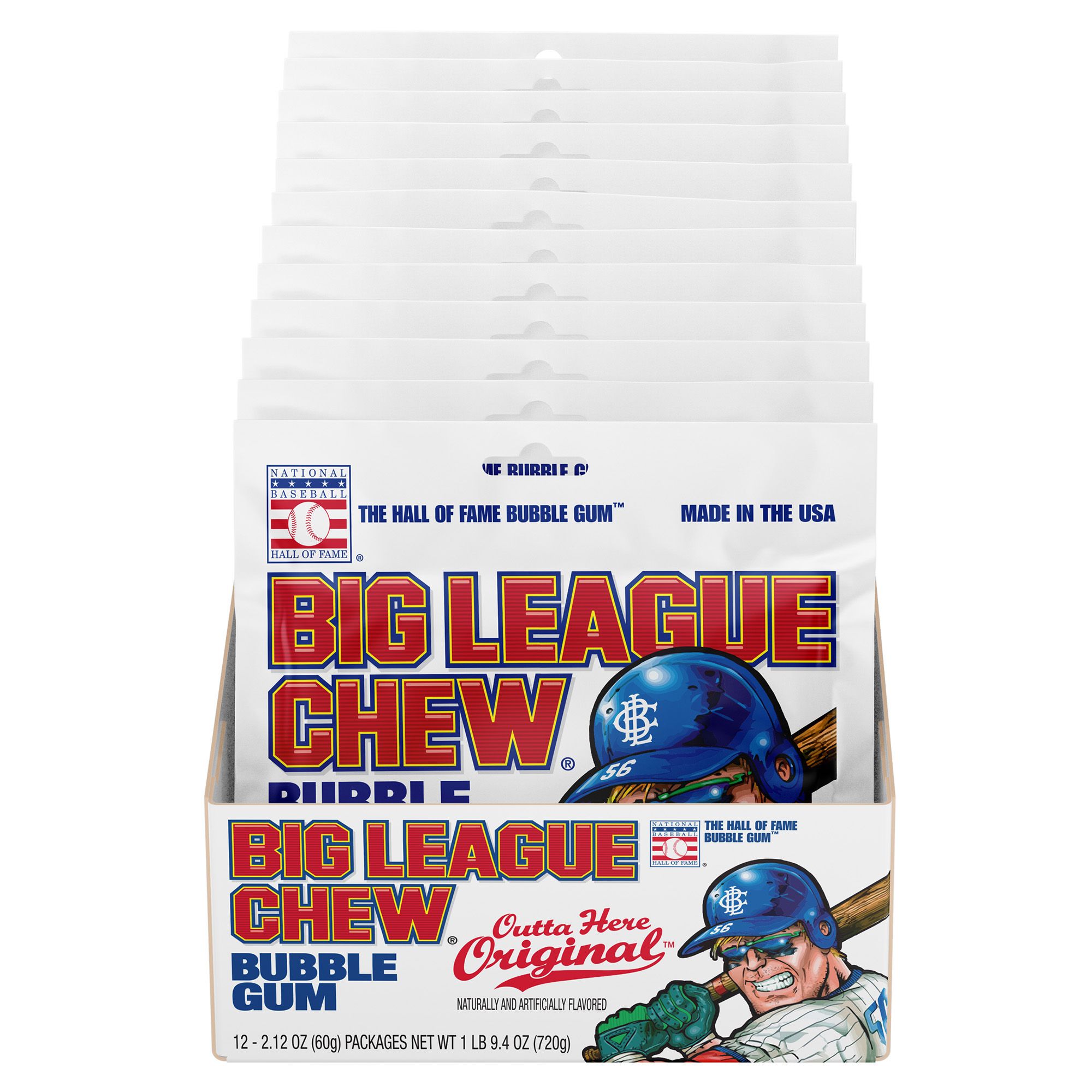 Big League Chew Outta' Here Original is the Ballplayers' Bubble Gum! The shredded bubble gum in a pouch is cool and nostalgic, and keeps a sports star's mouth from getting dry when the game is on. This club pack is great for ball games and parties.