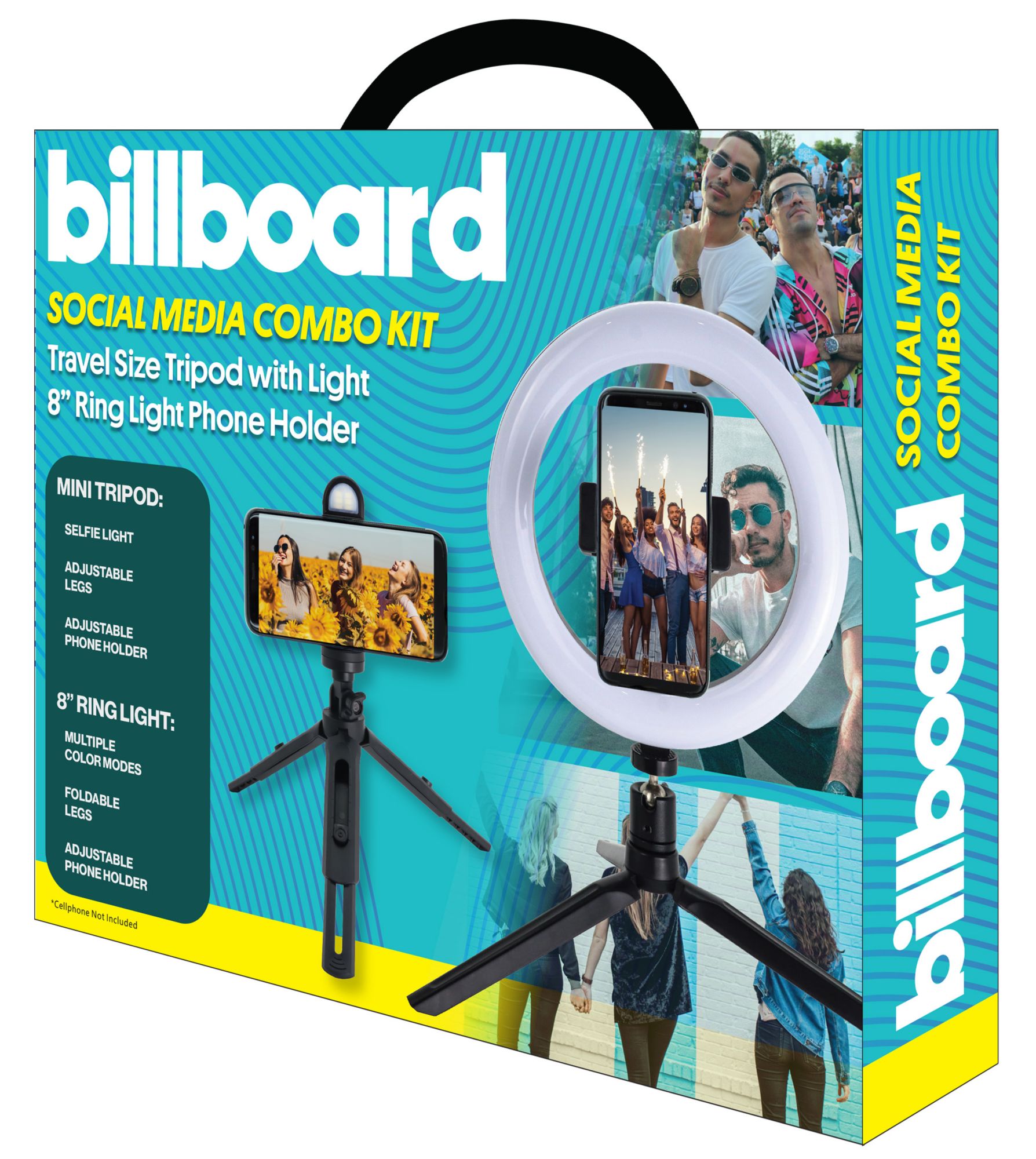 The Billboard Social Media Kit provides everything you need for professional-looking social media posts. Start posting your own personal video blogs today. The adjustable phone holder fits all of the most popular phones.