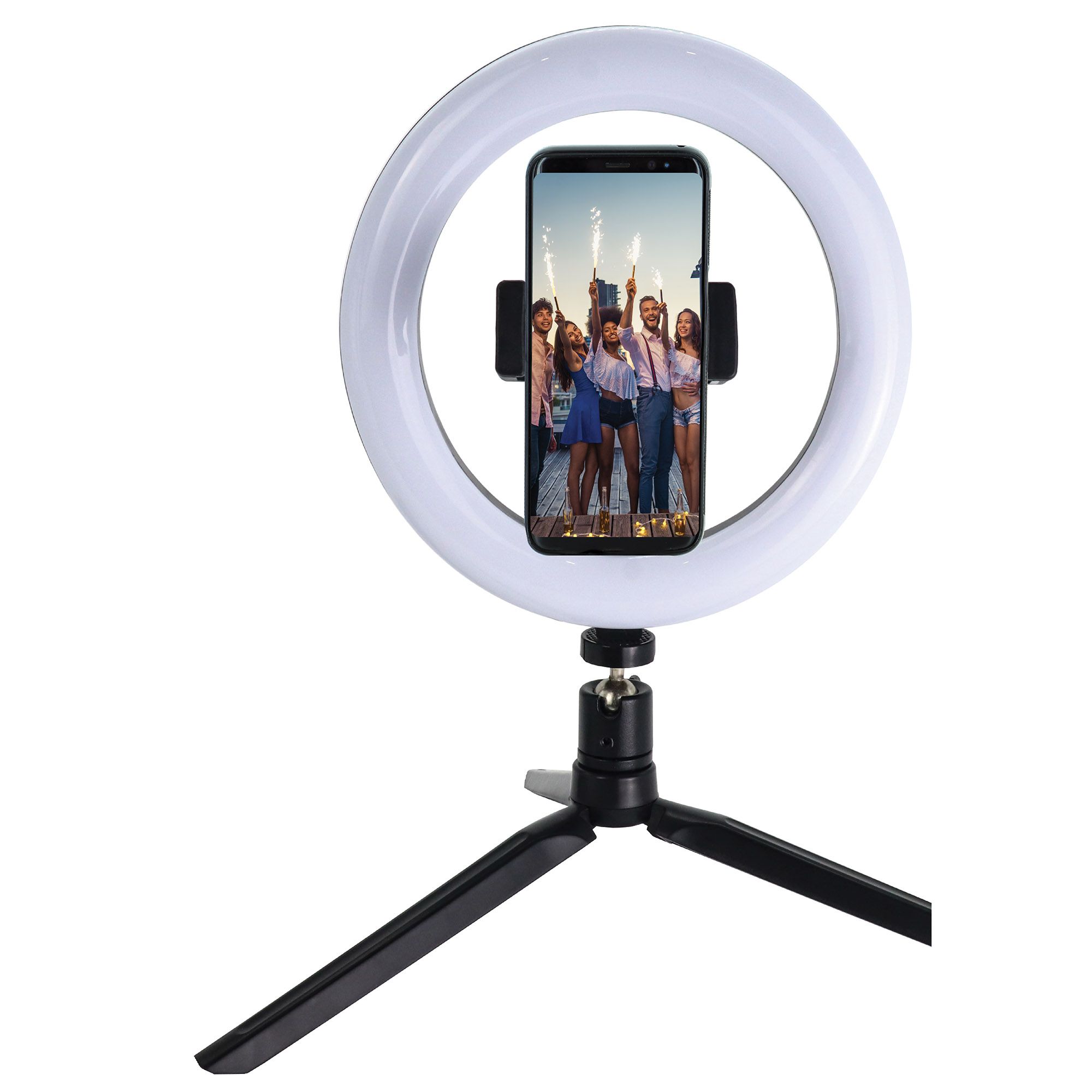 Includes 8" selfie ring light, mini tripod, and adjustable size phone holder
