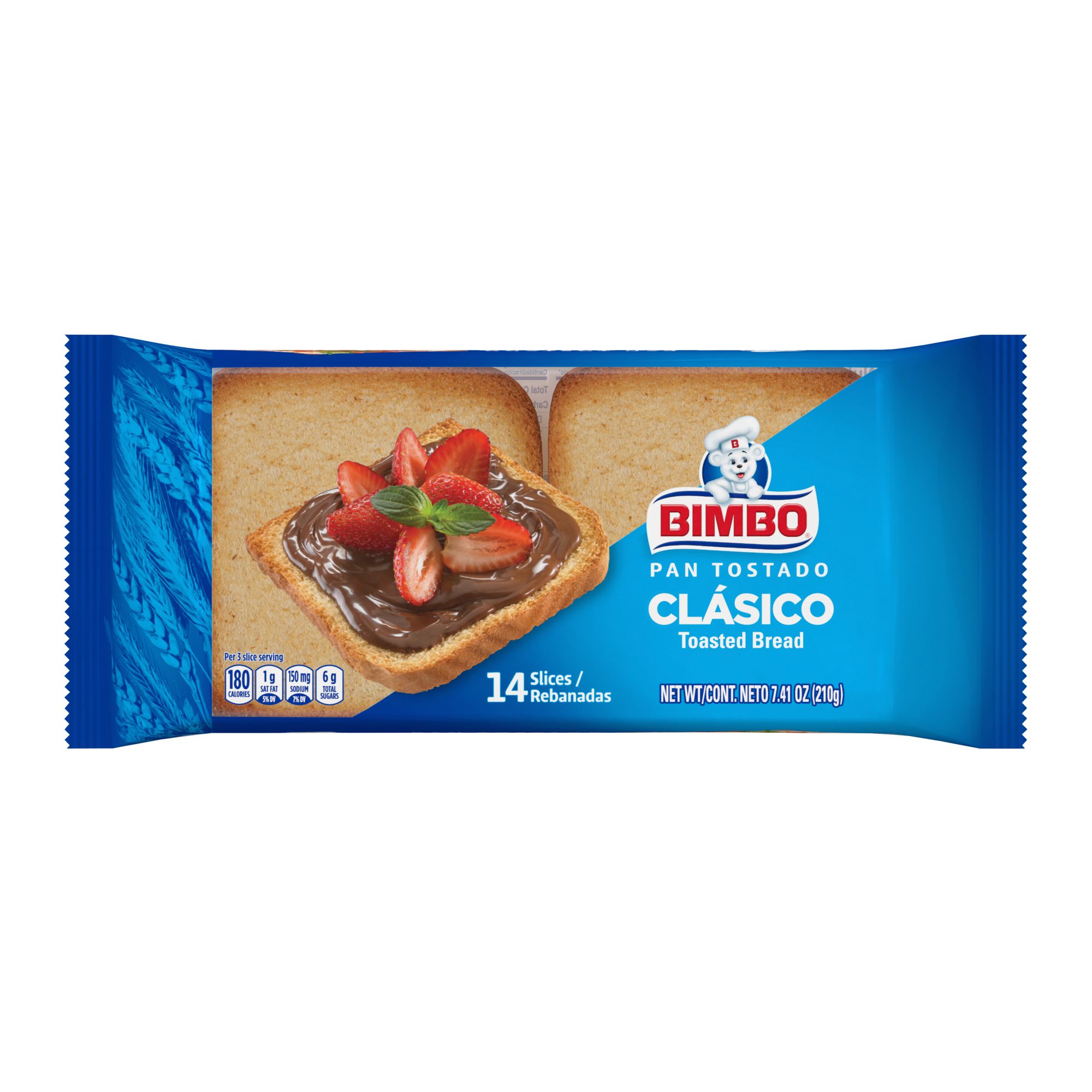 Bimbo Double Fiber Toasted Bread is high and fiber and are great to use for hors d'oeuvres. Product of the USA.