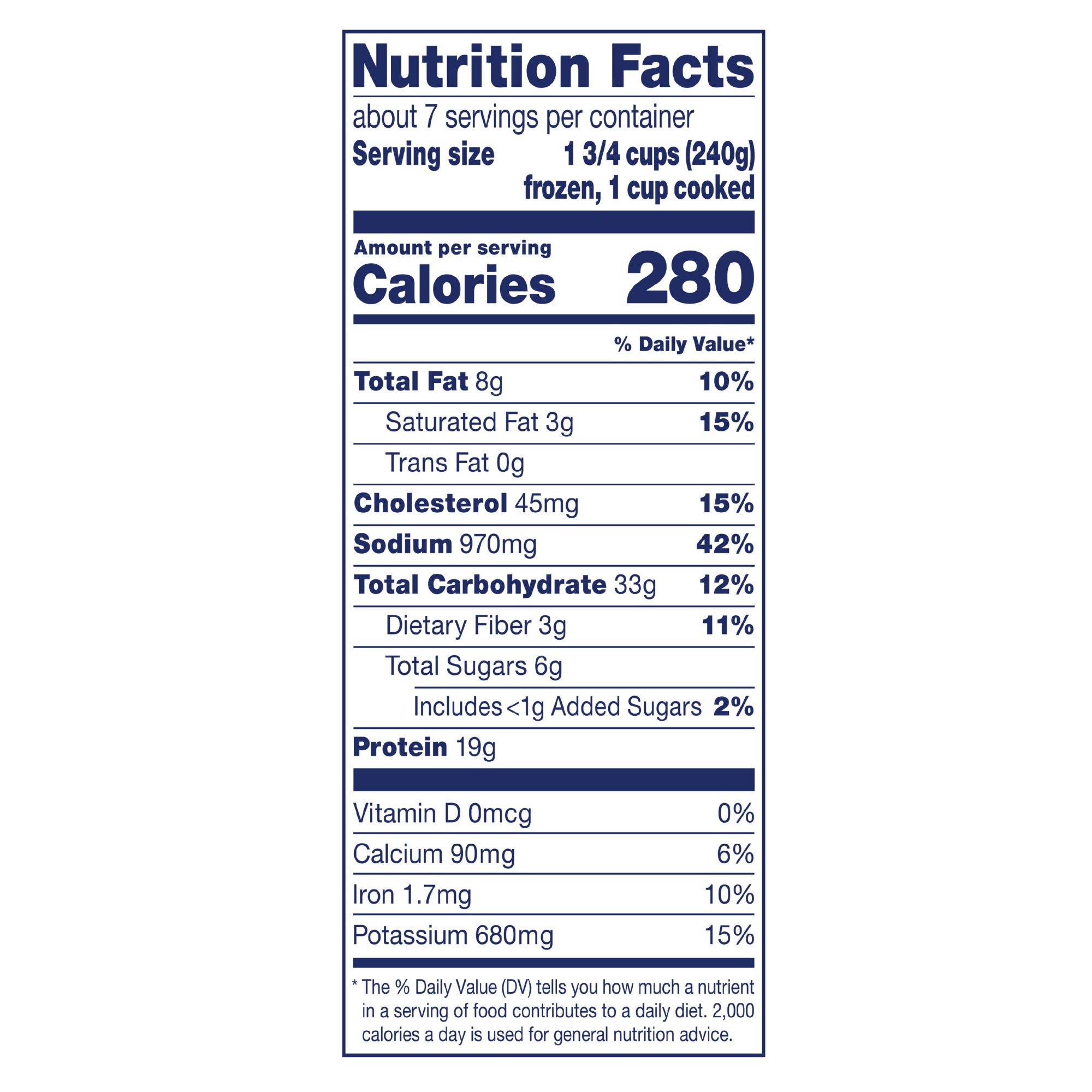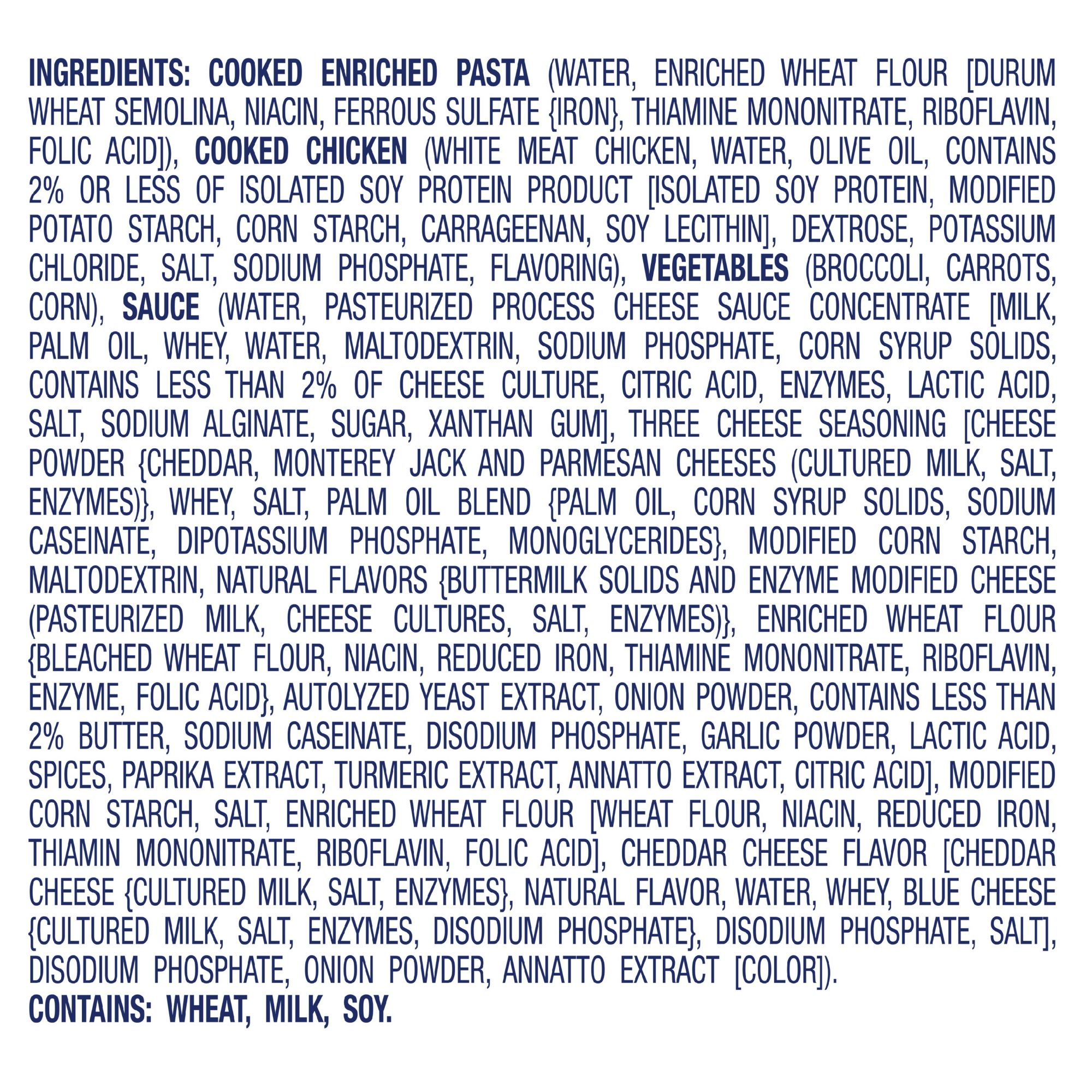 The whole family will enjoy this tasty meal, made with premium Birds Eye vegetables, quality meat and chef-inspired sauces, that is ready in minutes. Birds Eye Cheesy Chicken features white chicken and pasta in a cheese sauce with broccoli, carrots and corn. This package includes 63-oz. of Birds Eye Cheesy Chicken.