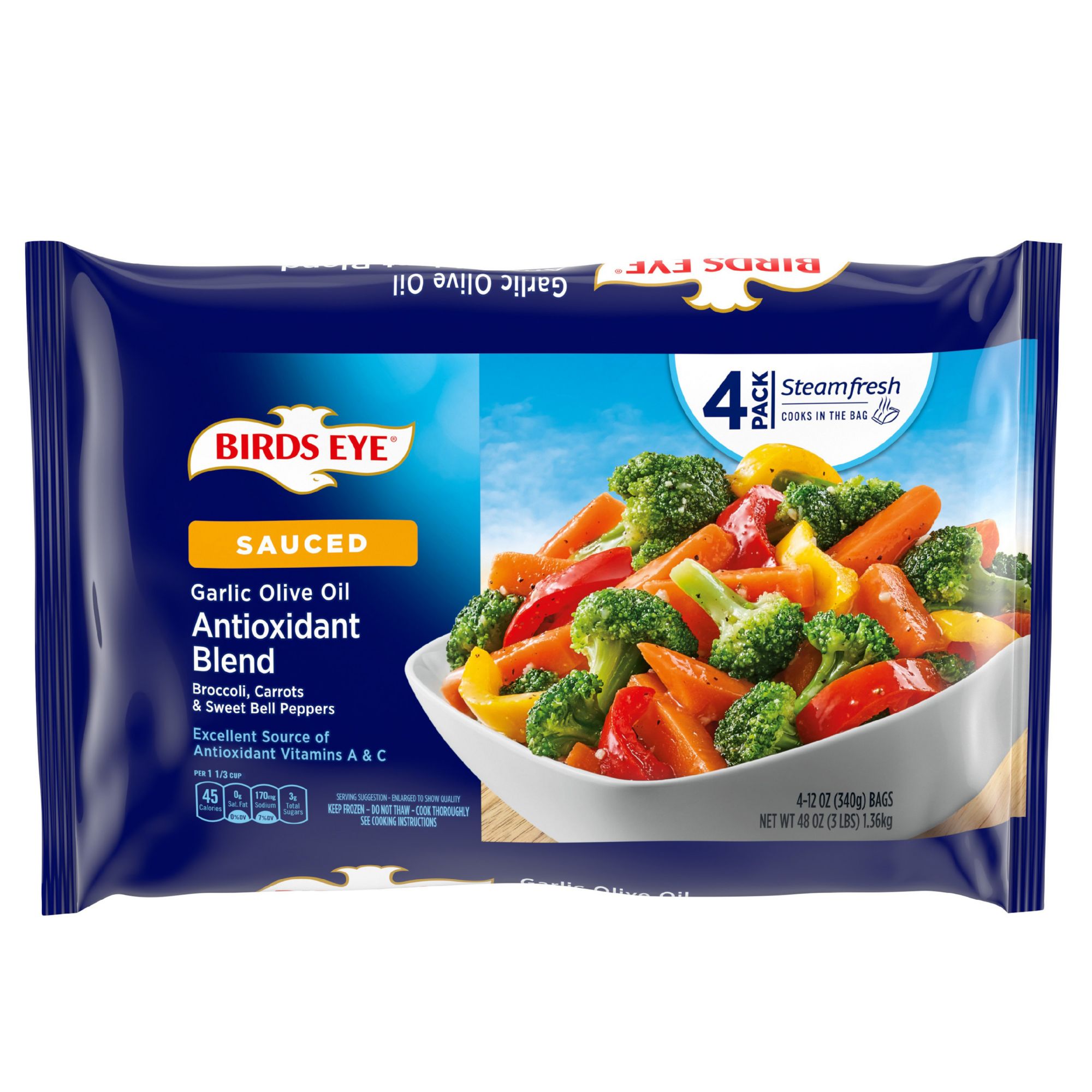 Naturally rich in antioxidants and vitamins A and C No preservatives Perfectly cooks in the bag and ready in minutes Product of USA Includes four pack of 12-oz. Birds Eye Antioxidant Blend