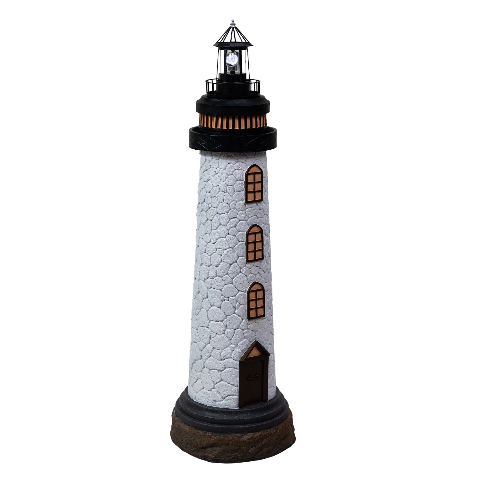 Add a nautical touch to your landscape with this 48" solar lighthouse. It will become the eye-catching accent of any garden or backyard. This decorative piece is designed to resemble a lighthouse, like the ones you would find on the east coast with its brick detailing and colorful stripes. It is illuminated by solar-powered LED lights that will send a beam of light to light up your pathway or entryway. Solar-powered LED allows you to set your lighthouse almost anywhere it has access to sunlight with no wiring. The hand-painted magnesium oxide lighthouse has a solar collector that absorbs sunlight by day and the light will shine softly when darkness approaches to simulate the beam of a true lighthouse. Create a gorgeous centerpiece in any garden or porch with this hand-crafted lighthouse. This statue is made with durable material and features a weatherproof design that will stand the test of time.