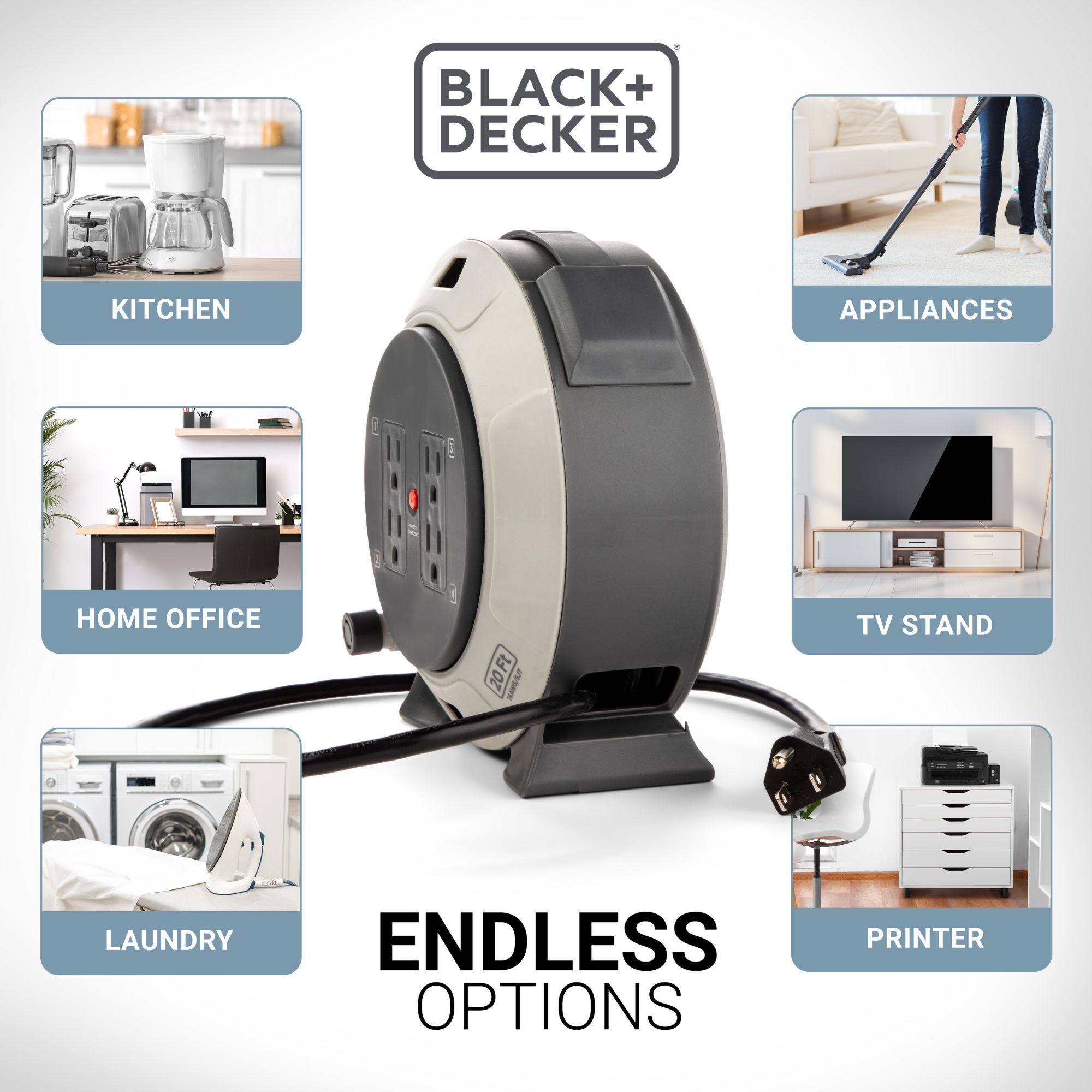 Black + Decker Retractable 20' Extension Cord Reel with 4 Outlets