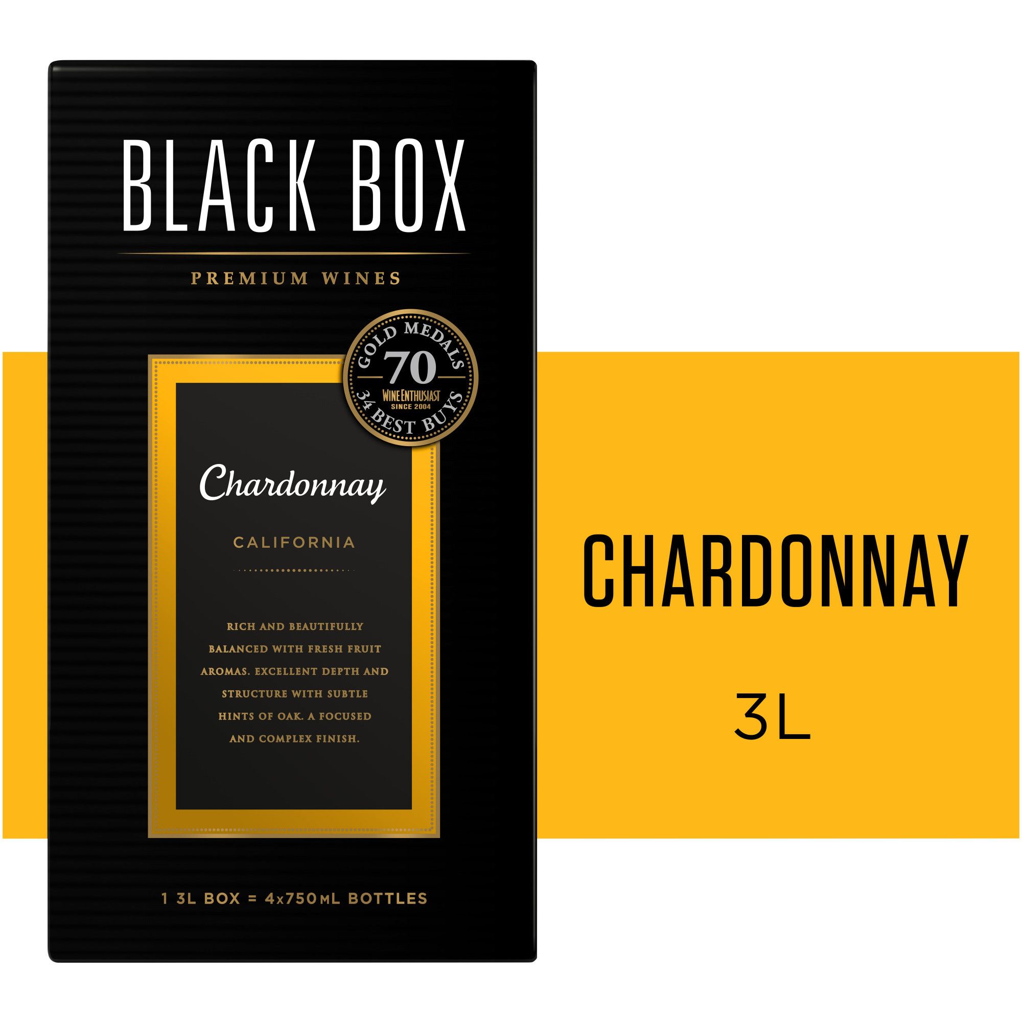 Refreshing hints of crisp apple and a touch of oak accentuate Black Box California Chardonnay's smooth finish. Upon opening, this California white wine stays fresh for six weeks, maintaining its excellent depth and structure. This handy box makes it easy to bring with you to dinner parties for evenings on the back patio. Pairs splendidly with chicken, white fish, and soft cheese.
