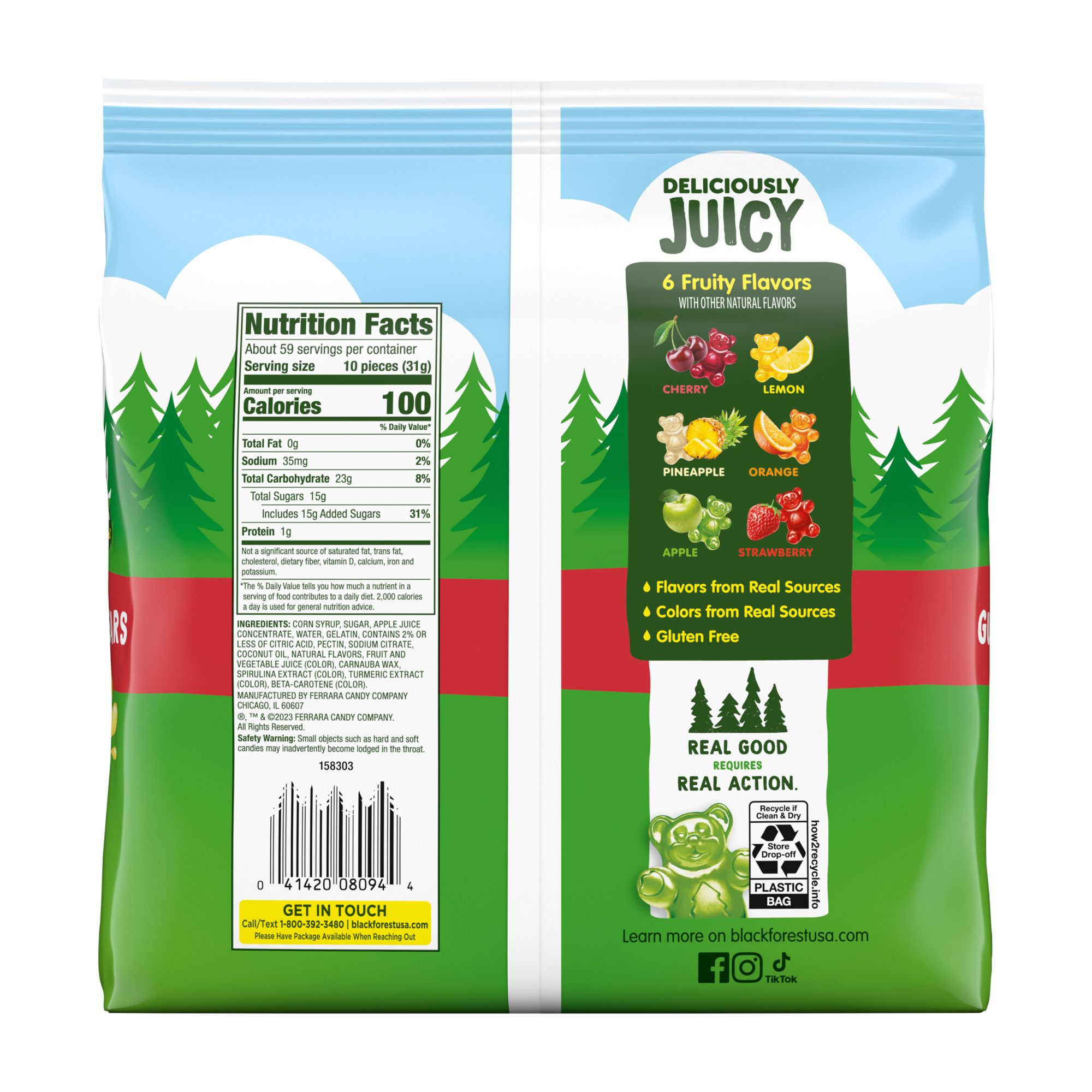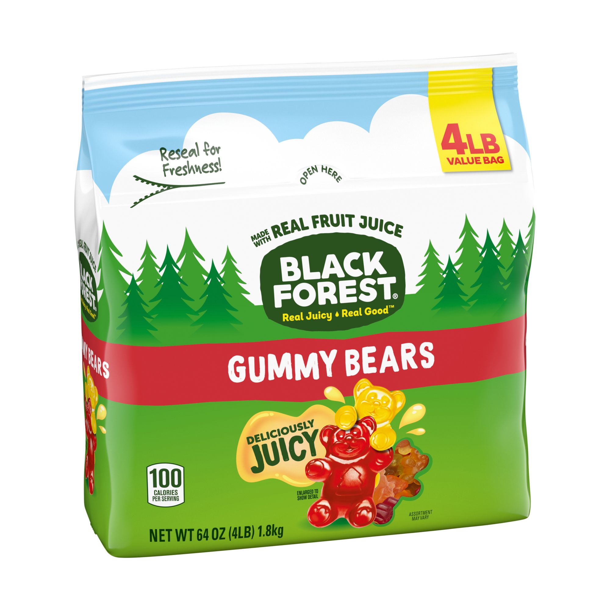 Black Forest Gummy Bears are made with fruit juice and colors from real sources. They're also fat free and come in a variety of great fruity flavors. Soft and chewy, each one is as delicious as the next. No wonder they're a fan favorite!