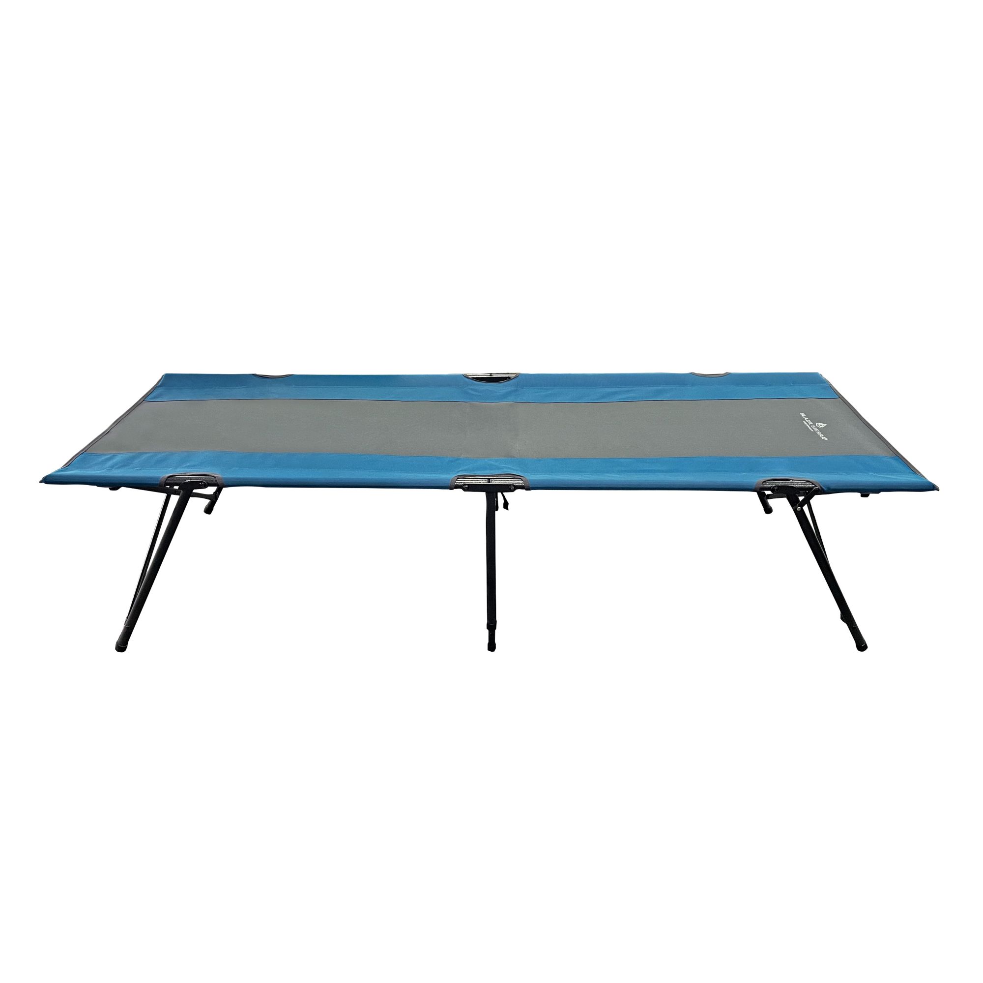 This Insta set cot has a tough steel frame with heavy-duty fabric engineered for durability. It is quick and easy to set up with a stable base that includes leg locks. The construction allows for more sleeping room without end bars to interfere with your head or feet. It has a max capacity of 300 lbs. and folds up quickly for easy storage. It comes with a convenient carry bag made of Poly Oxford 600D material for durability.