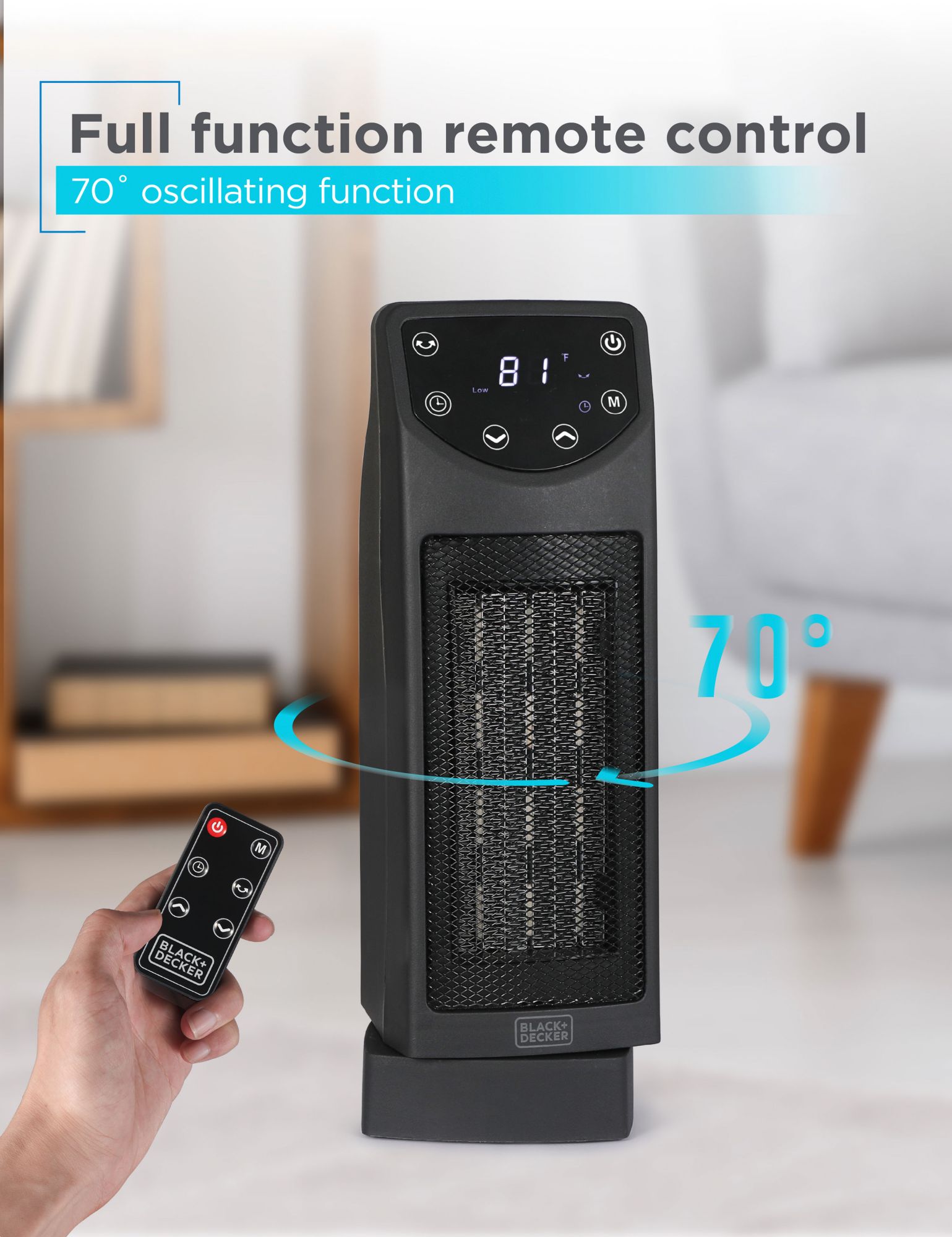 BLACK+DECKER Oscillating Ceramic Desktop Heater with Remote, 1500W Space Heater and Fan Combo