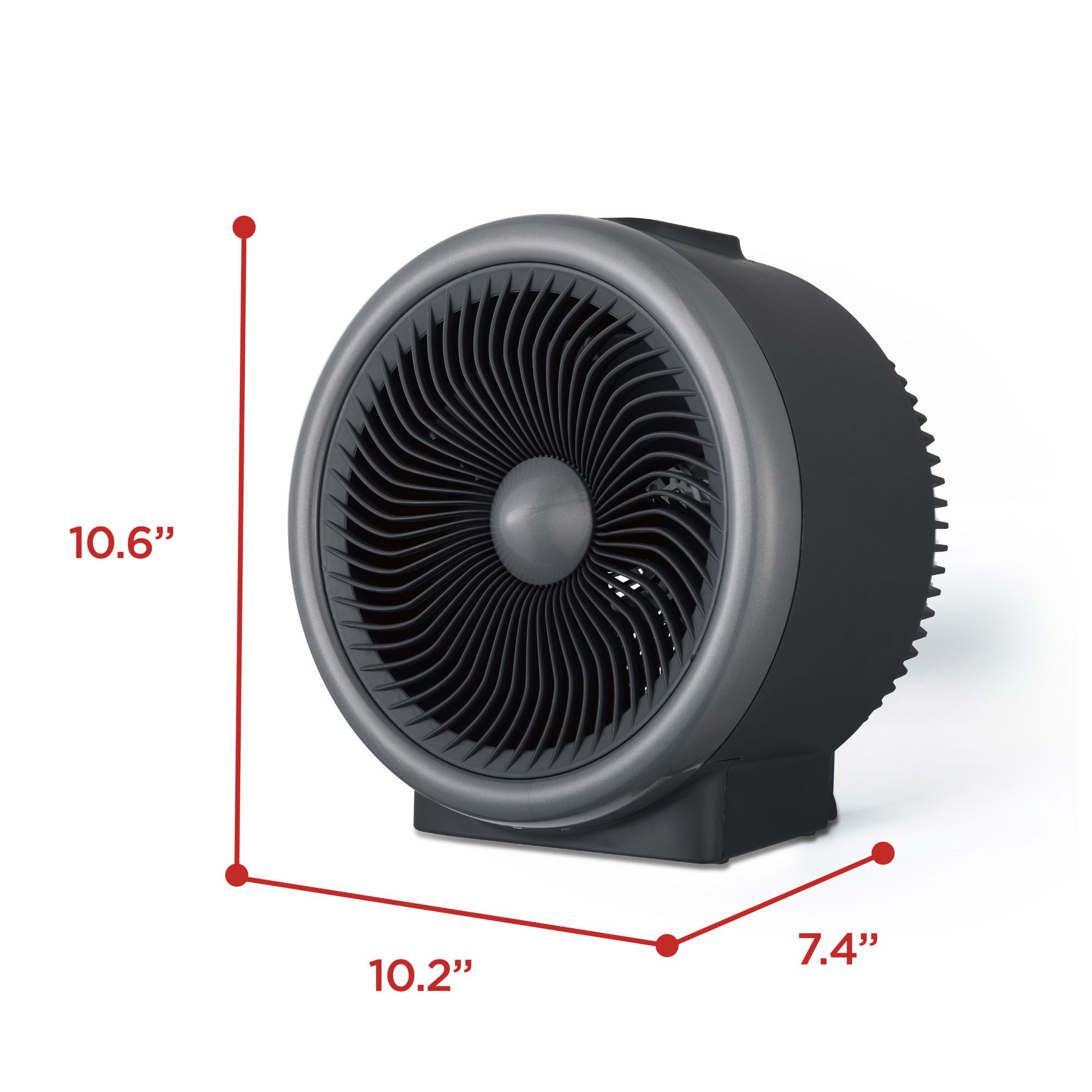 When it comes to space heaters for indoor use, electric heaters for indoor use, and portable heaters for indoor use, this BLACK+DECKER turbo desk heater for office is a top pick for quality and efficient heating. Portable and powerful, you can take this mini heater for an office desk with you anywhere! With dimensions of 10.24"L x 7.44"W x 10.59"H and lightweight at 3.86 lbs., our small electric heater will work well at home, in the office, or anywhere else you need turbo heat the most! Featuring a power indicator light, safety overheat protection, a tip-over auto shutoff function, digital controls, electronic thermostat control, and LED indicator lights, this space-saving radiant heater is intuitive and easy to navigate. With a built-in convenient carrying handle for seamless portability, this portable safe heater is beyond easy to take from place to place. Worried about it being too loud? Not with this turbo heater! The innovative blade design ensures an impressively low output noise of 34.7 dB Finally, this BLACK+DECKER electric heater and space heater with thermostat has 4 heat settings: fan low, fan high, low heat (1000W), and high heat (1500W). 120V/60Hz. Set your temperature anywhere between 65° and 85°. Enjoy this heater anyplace, anytime, and anywhere you need it most.