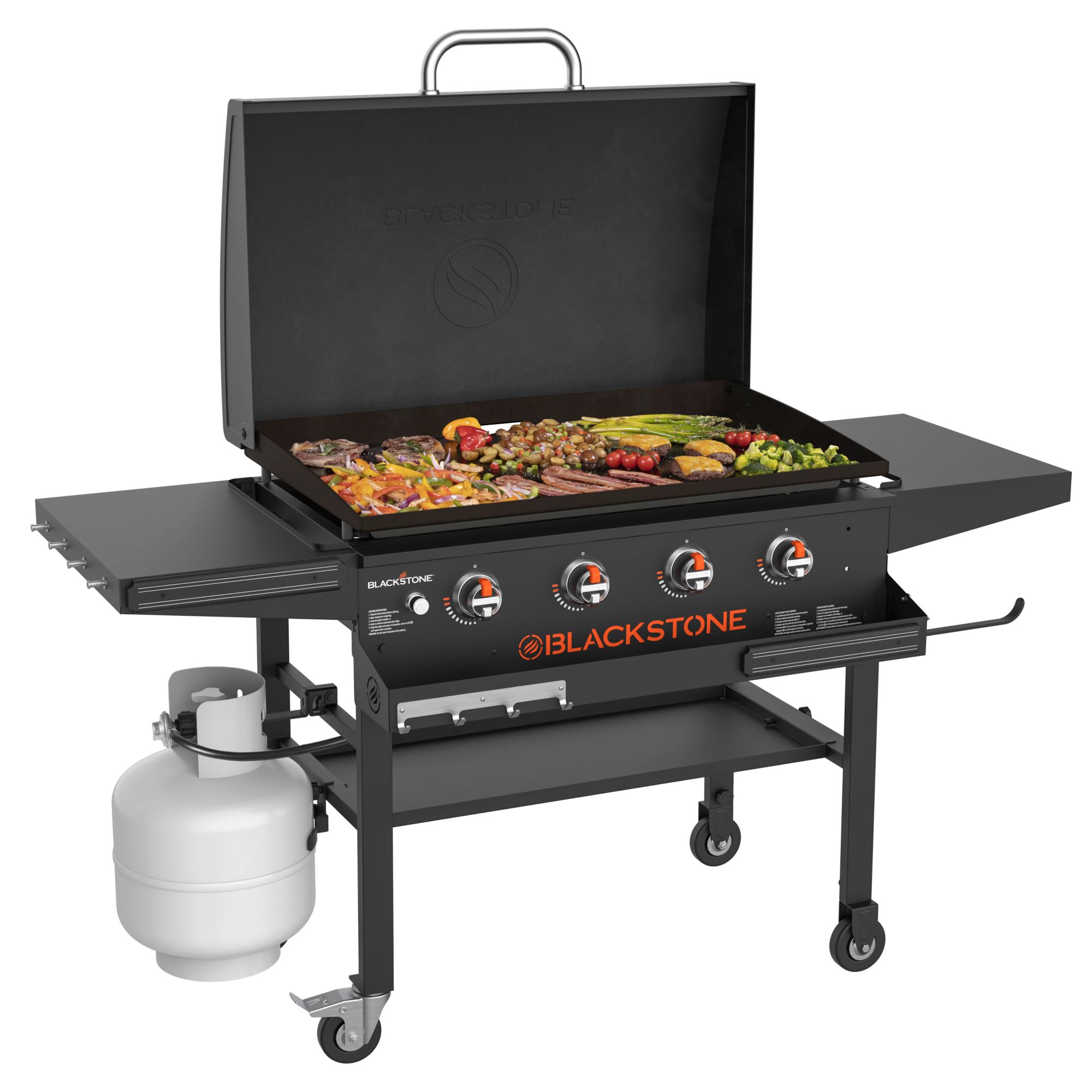 Blackstone 36" Griddle With Integrated Hood, Dual Horizontal Folding Shelves, Front Shelf & Soft Cover