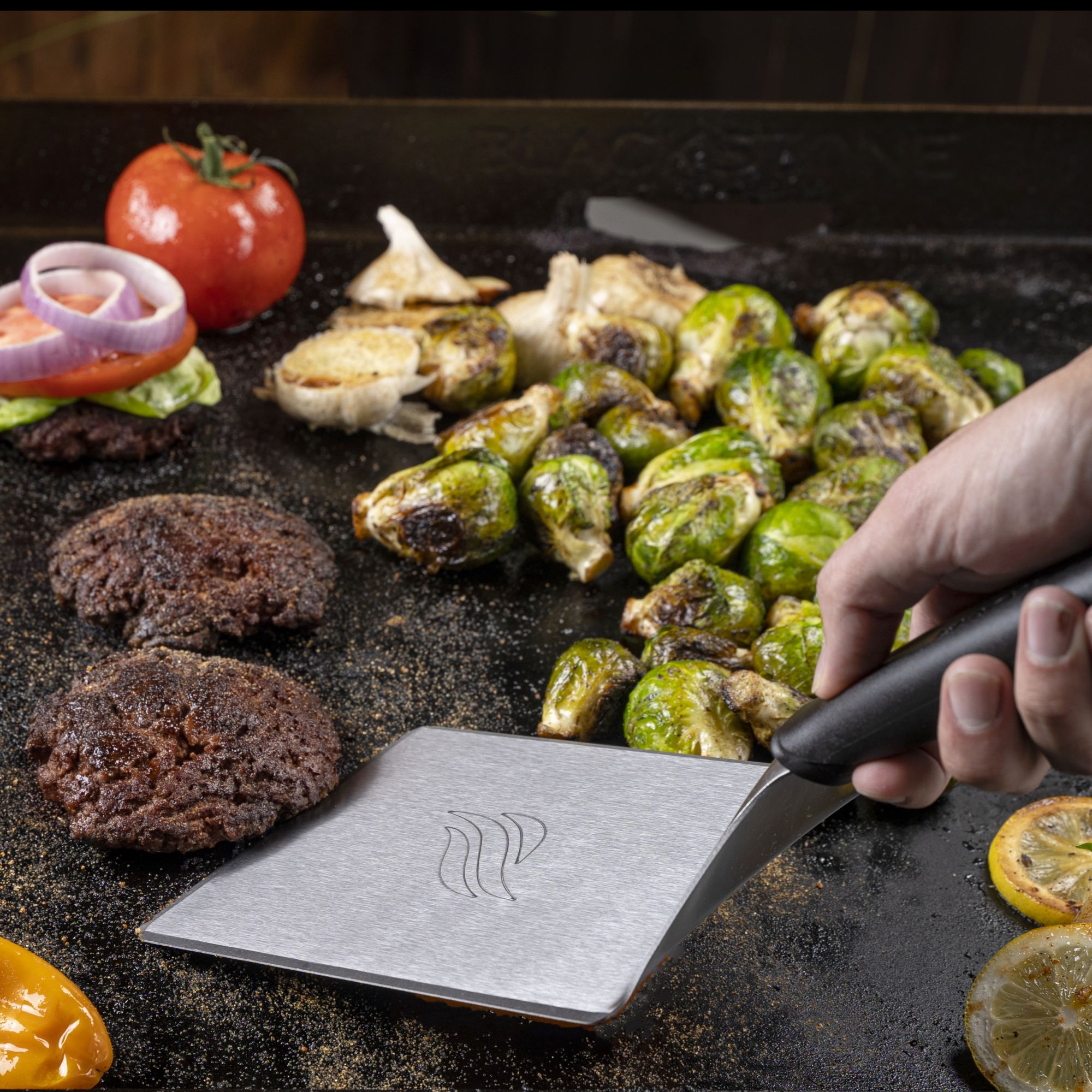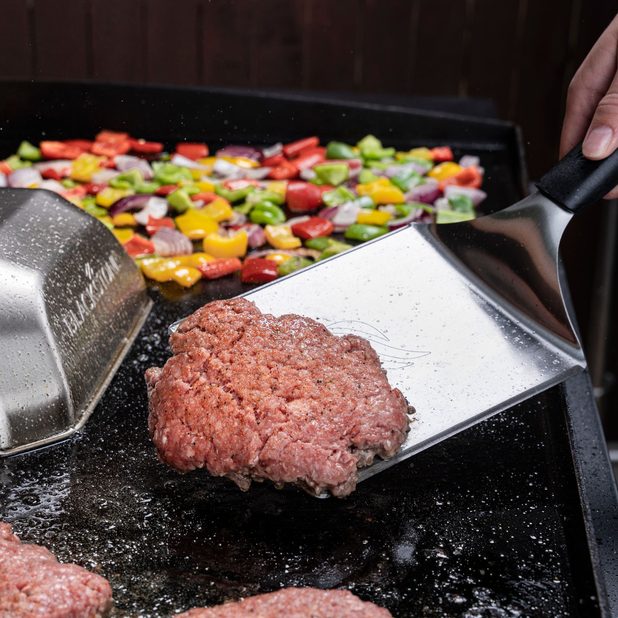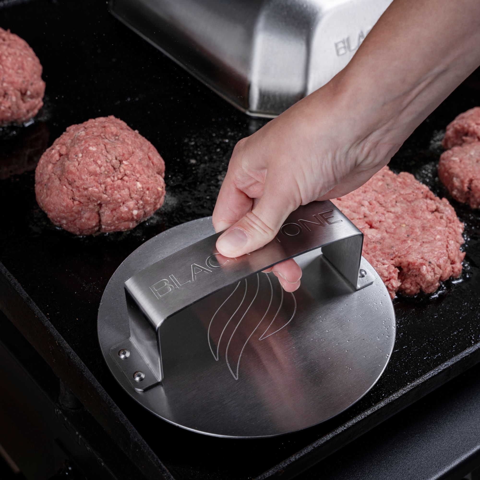 The Blackstone Ultimate Burger Kit is made to smash, flip, steam and season your burgers to perfection! Your burgers will be the envy of the neighborhood with this kit. The kit features a large hamburger spatula, burger press, spice dredge and basting dome. These specifically selected tools are designed to help you build the perfect smash burger with the burger press. Make luscious cheeseburgers under the basting dome. Season your burger just right with the spice dredge. Flip your burger over without it falling to pieces with the heavy duty, extra wide burger spatula. All pieces are dishwasher safe for easy clean-up.