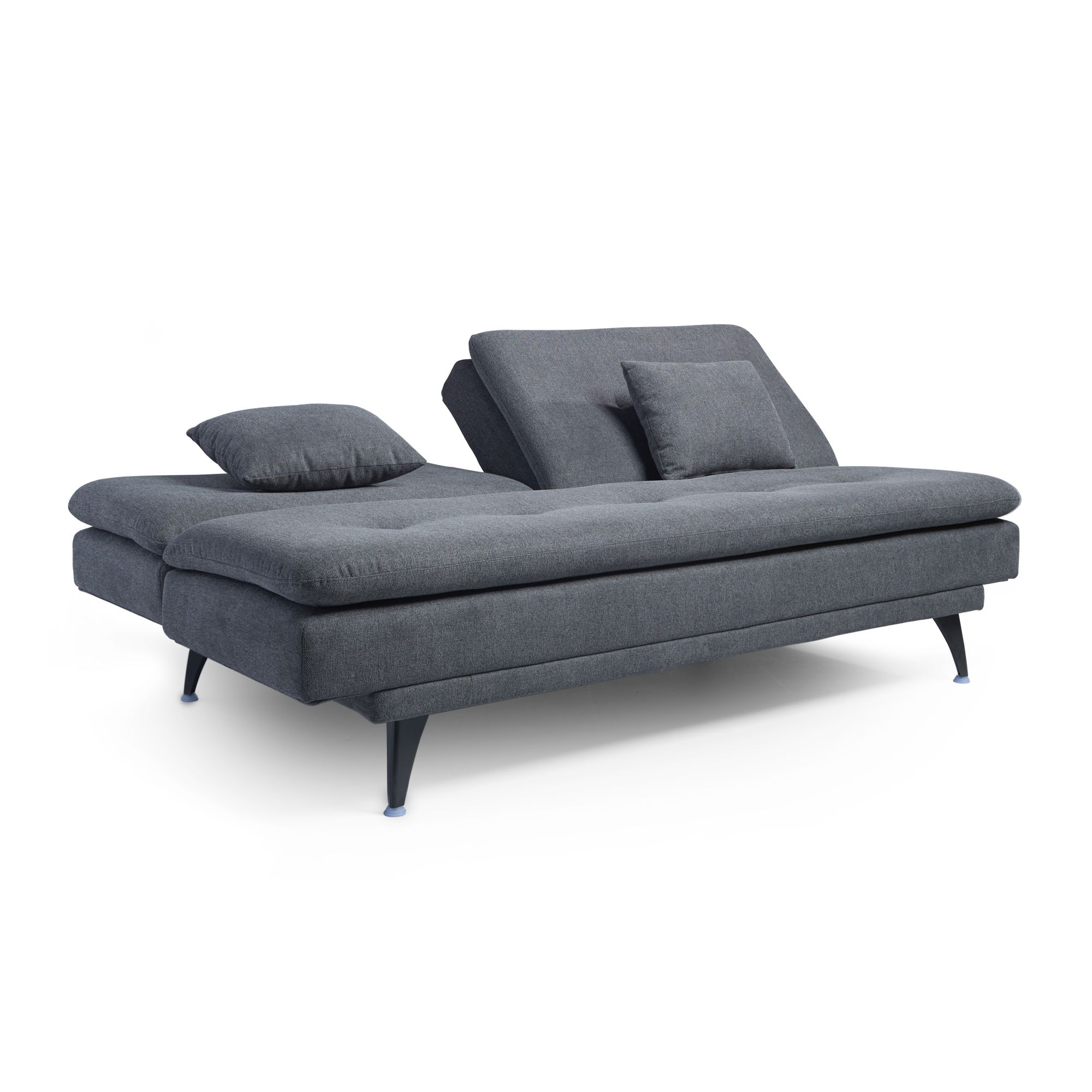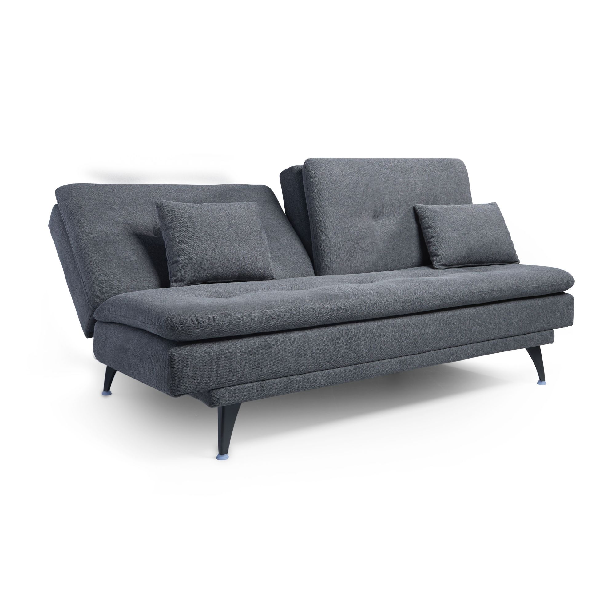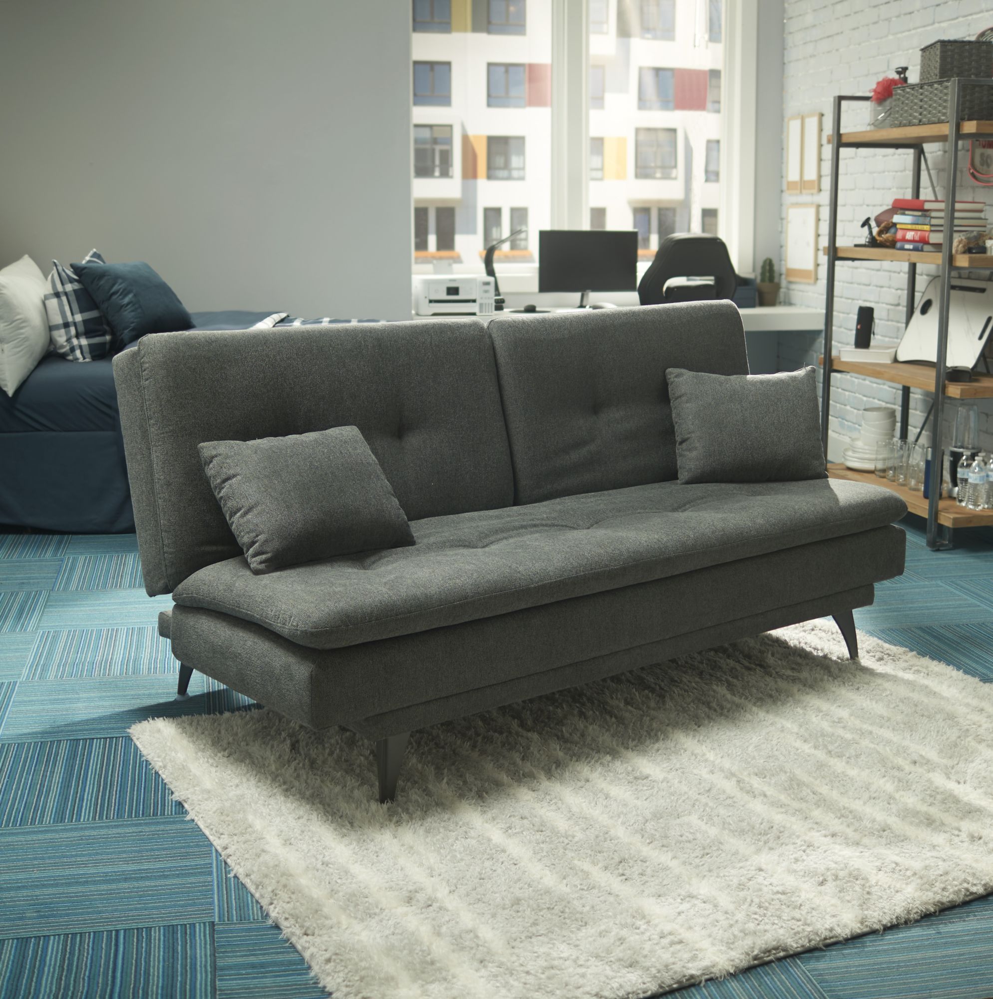 Whether for an apartment, dorm, guest room, or office, the Blake Futon is a perfect functional addition to any compact space. Made with a high-quality woven fabric, and filled with memory foam, this piece is equally comfortable and functional. The Blake Futon features an adjustable backrest, with three adjustment angles (105,130, and 180 degrees). The backrest is also divided, so this futon can be easily converted from a sofa to a chaise lounge. Two matching 12" x 18" pillows are also included for an easy transition from sofa to sleeper.