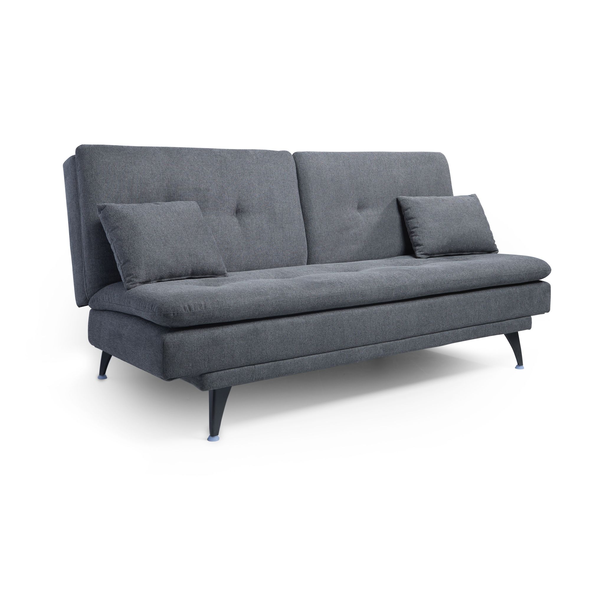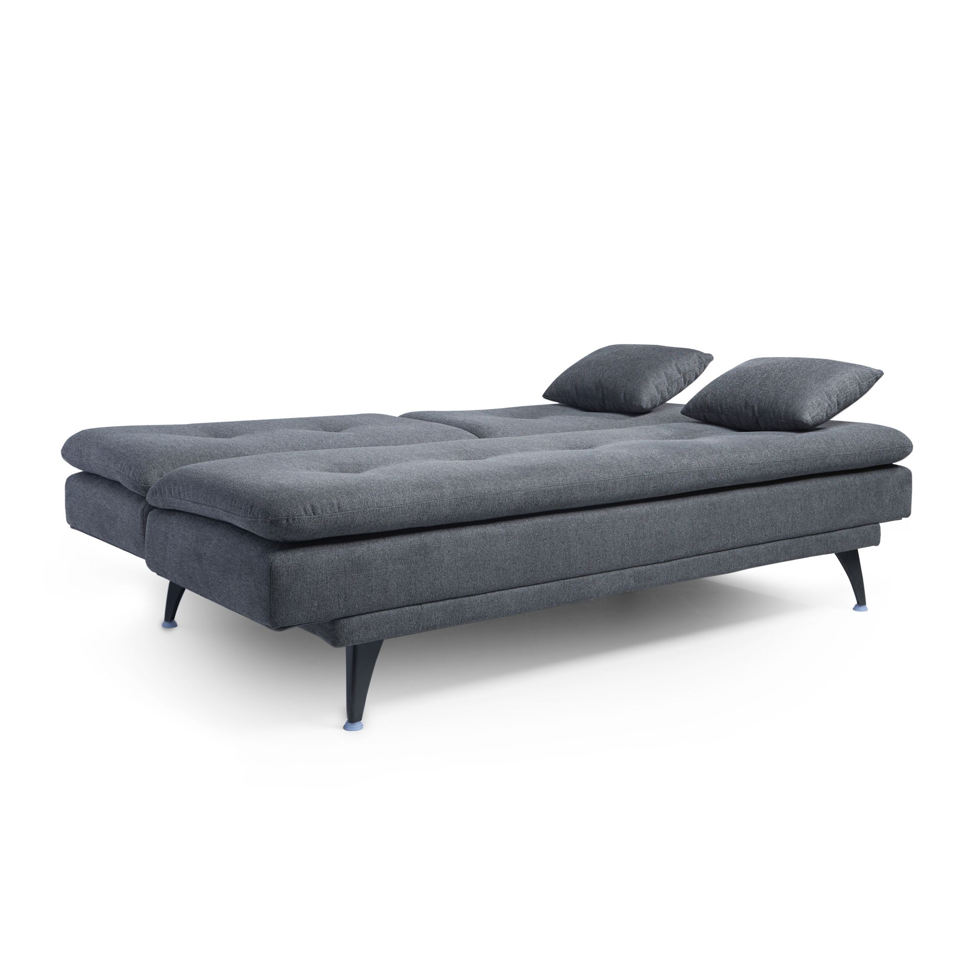 High quality woven fabric Three angles adjustment backrest (105,130 and 180 degrees) Memory foam on seating area Coil spring is evenly stressed, not easy to deform Strong metal legs Includes (1) futon and (2) 12"x18" pillows
