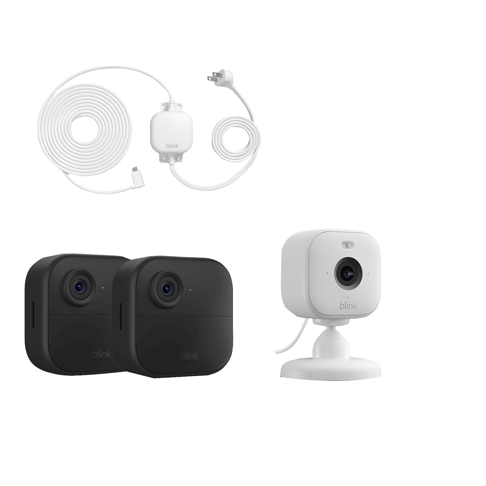 Outdoor 4 is a fourth-generation wire-free smart security camera that helps you protect your home inside and out right from your smartphone. Mini 2 is our second-generation, plug-in smart security camera that helps you protect your home inside and out right from your smartphone. The weather-resistant power adapter enables Blink Mini 2 for outdoor use and provides nonstop power for the Blink Outdoor 4 camera.