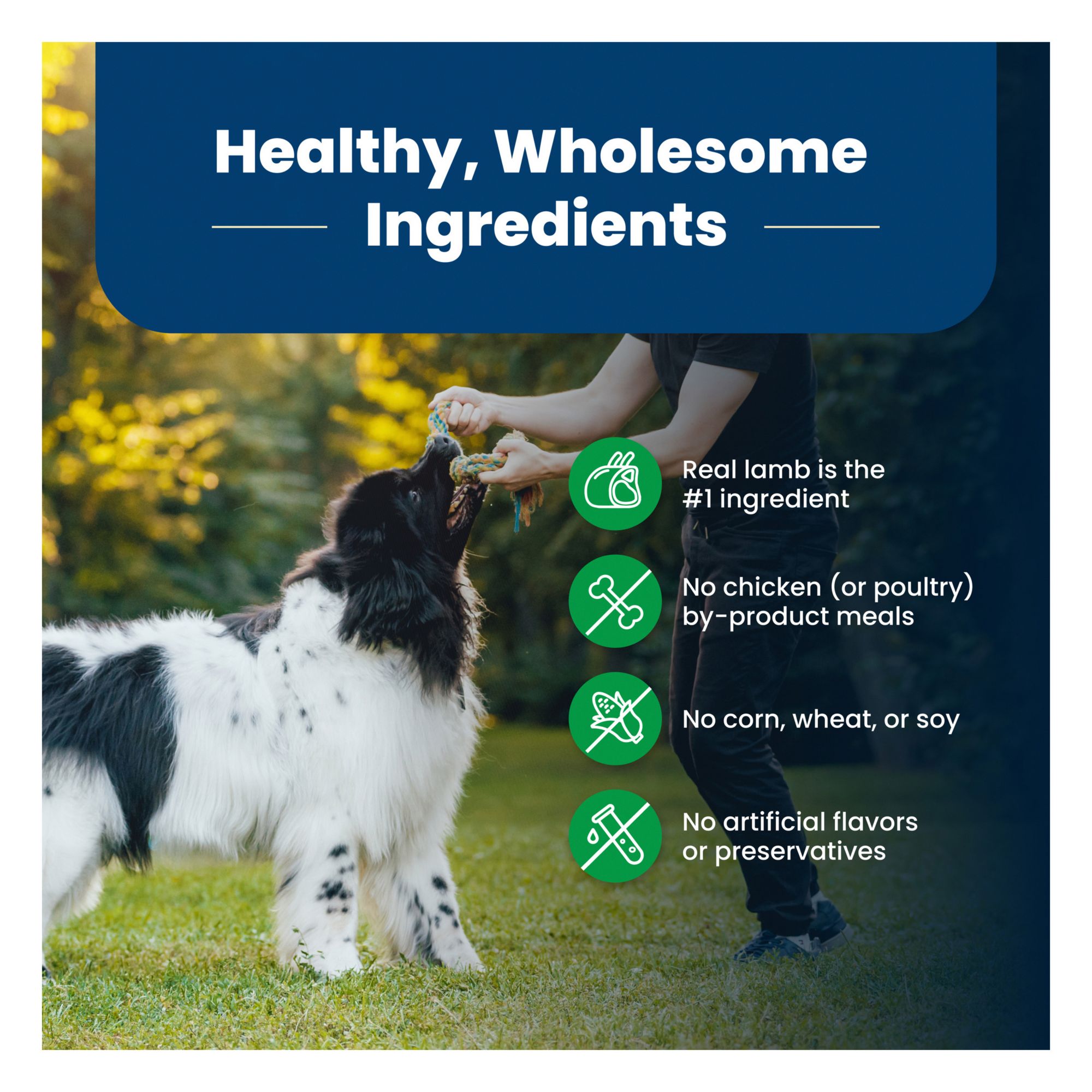 | Ingredients | Deboned Lamb, Chicken Meal, Brown Rice, Oatmeal, Barley, Peas, Pea Starch, Chicken Fat, Flaxseed, Dried Tomato Pomace, Natural Flavor, Fish Meal, Dried Yeast, Salt, Potassium Chloride, Calcium Carbonate, Direct Dehydrated Alfalfa Pellets, Dicalcium Phos |