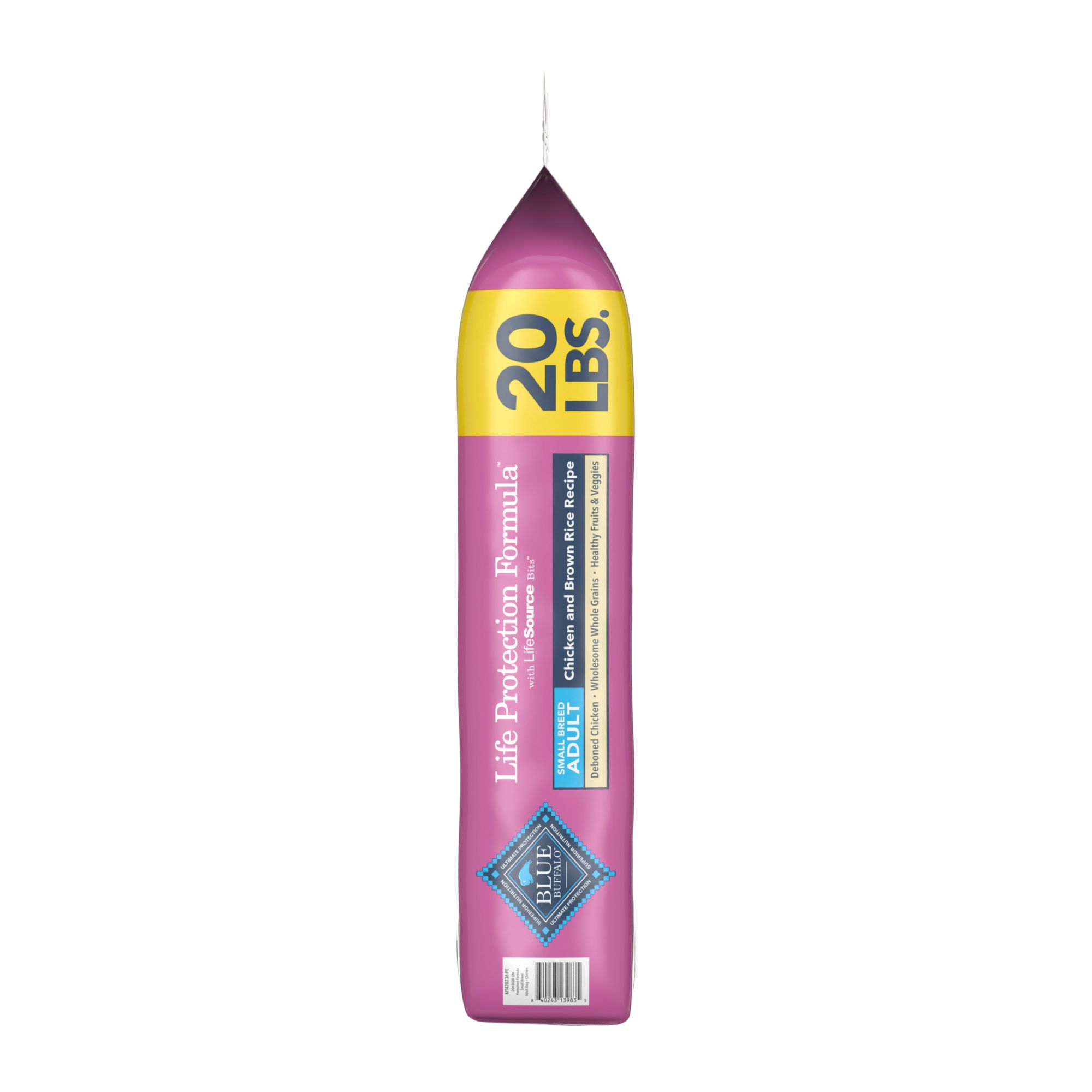 Blue Buffalo Features Real Meat as the First Ingredient: High-quality protein from real chicken helps your dog build and maintain healthy muscles; Plus they contain wholesome whole grains, garden veggies and fruit Blue dog foods are made with the finest natural ingredients enhanced with vitamins and minerals; Blue contains no chicken (or poultry) by-product meals, corn, wheat, soy, artificial flavors or preservatives Specially Formulated for Small Breed Dogs: Blue Life Protection Formula Small Breed dry dog food contains increased levels of protein and carbohydrates to meet the energy needs of smaller dogs with kibble size ideal for smaller jaws A precise blend of antioxidants, vitamins and minerals carefully selected by holistic veterinarians and animal nutritionists to support immune system health, life stage needs and a healthy oxidative balance Enhanced Imagery: Digital product packaging has been enhanced to highlight products’ ingredients and essential benefits; while the physical packaging will differ slightly, all information is accurate Includes one Bag of Blue Life Protection Formula Small Breed Adult Dry Dog Food, Chicken and Brown Rice, 20 lb. bag