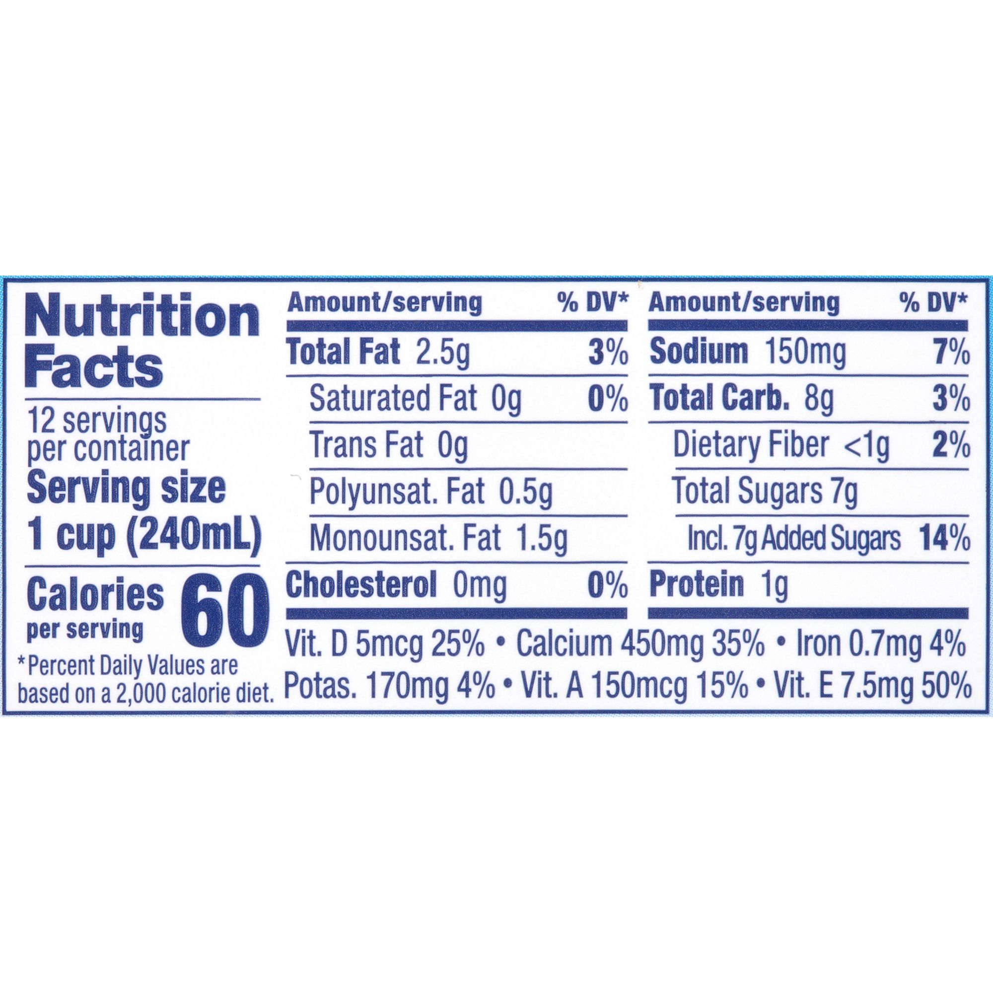 Delicious alternative to dairy milk Lactose-free Soy free Calcium enriched 60 calories per cup No saturated fat