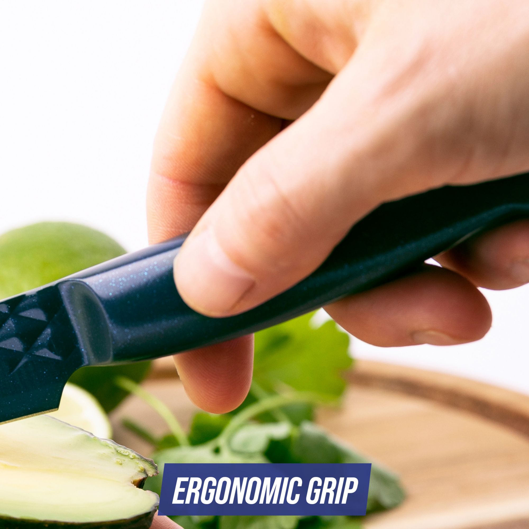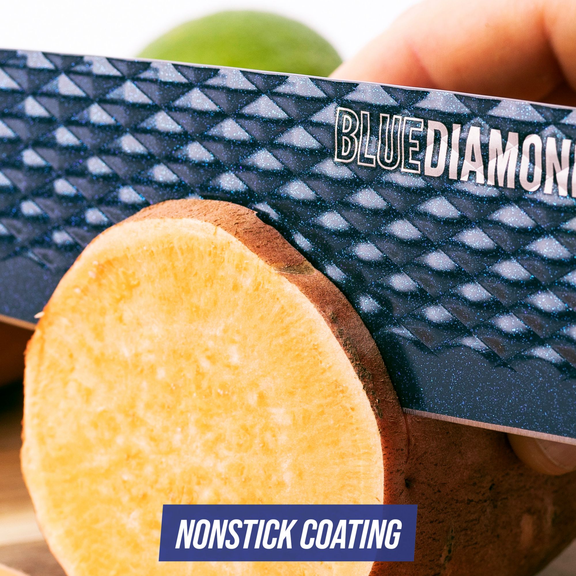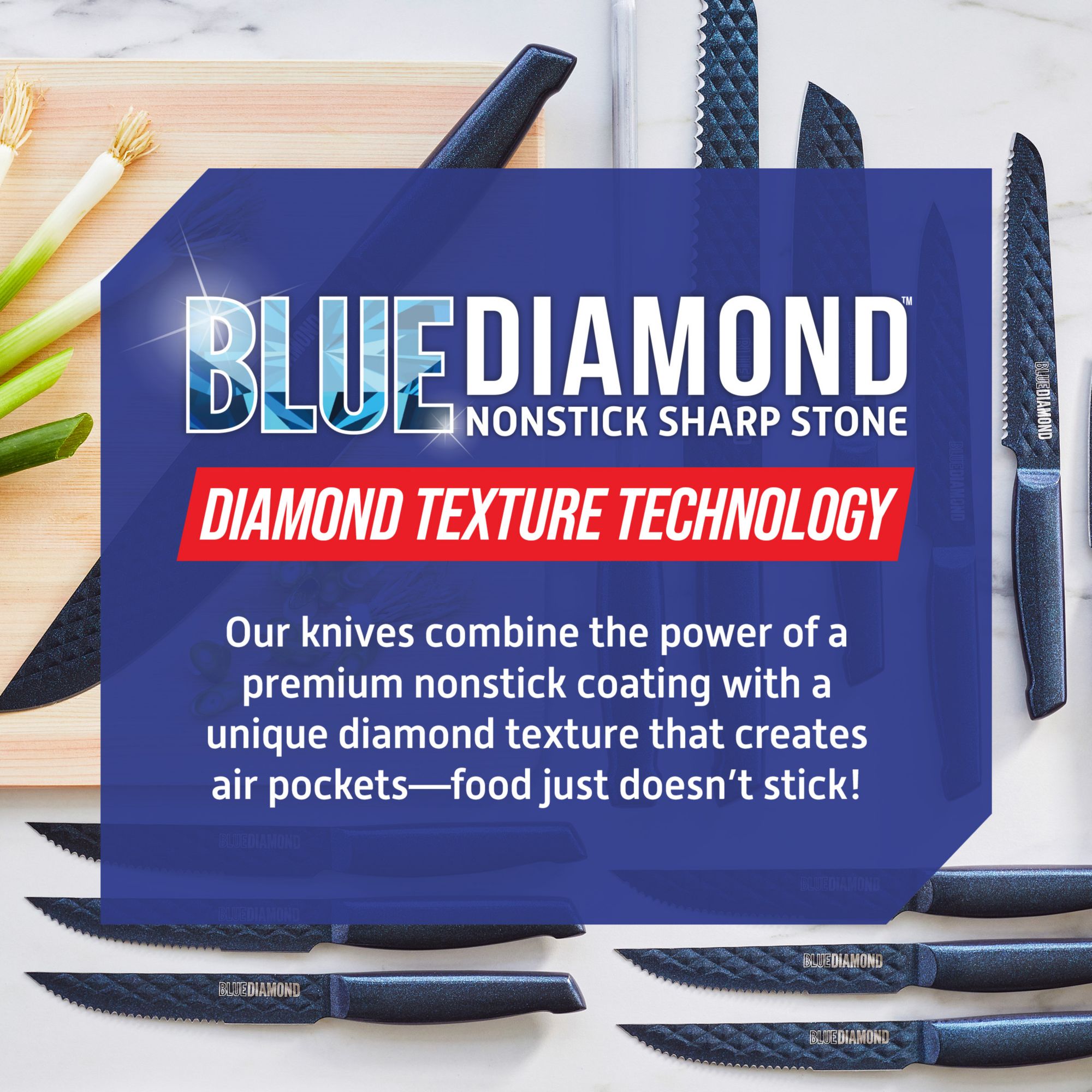 Tackle your kitchen prep work with quality knives that are a cut above the rest —Blue Diamond’s Sharp Stone stainless steel knives combine the power of a nonstick coating with Diamond Texture Technology, a unique diamond texture that creates air pockets. To put it simply: food just doesn’t stick. Blue Diamond cutlery is crafted from stainless steel, these knives have ergonomic grips with slip-resistant surfaces and precision cut edges for power and performance. You will find the knives to be lightweight and love that they dishwasher safe, which means easy cleanup. These knives make any kitchen task effortless. These knives are also rust resistant. It's truly the only set you will need in the kitchen and will last for years to come.