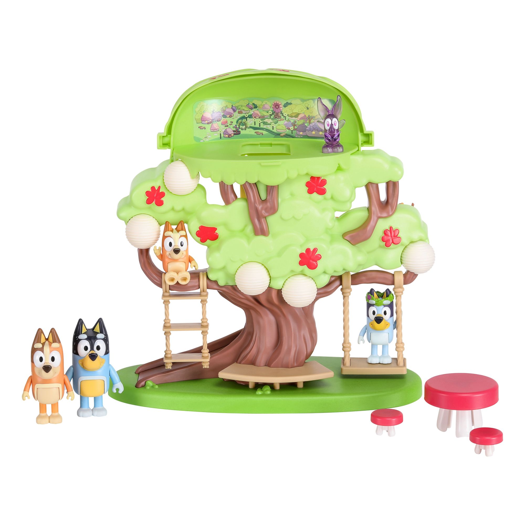 This playset is huge at a whopping 11" tall and is a replica of the iconic tree in Bluey's backyard where so many of her and Bingo's adventures took place