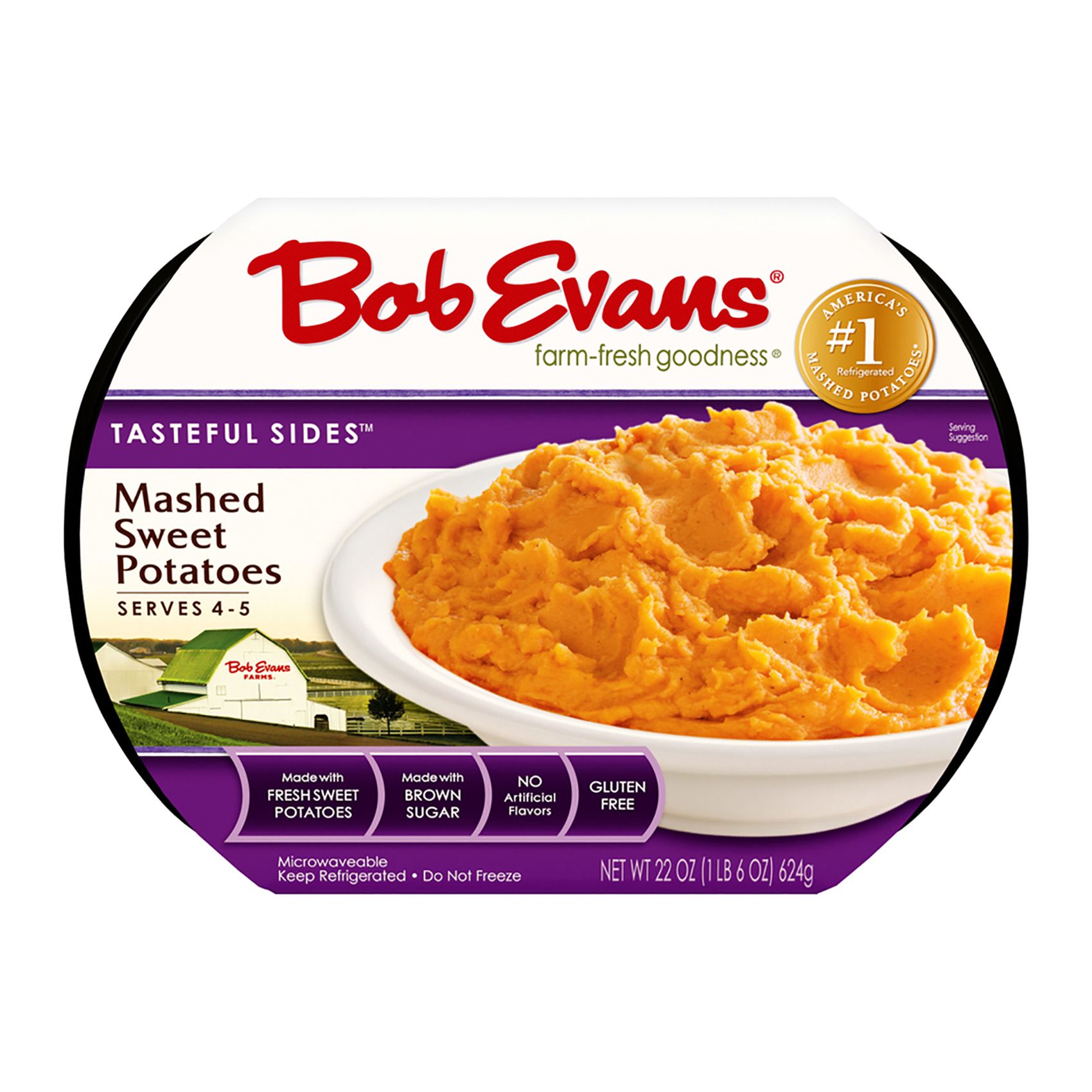 Delicious mashed sweet potatoes without the prep and clean-up! Bob Evans Mashed Sweet Potatoes are a convenient side dish anytime and ready in just minutes. Excellent as a traditional side dish or used as an ingredient in Sweet Potato Muffins, Pancakes or even Sweet Potato Soups. Don't waste time picking up this holiday item.