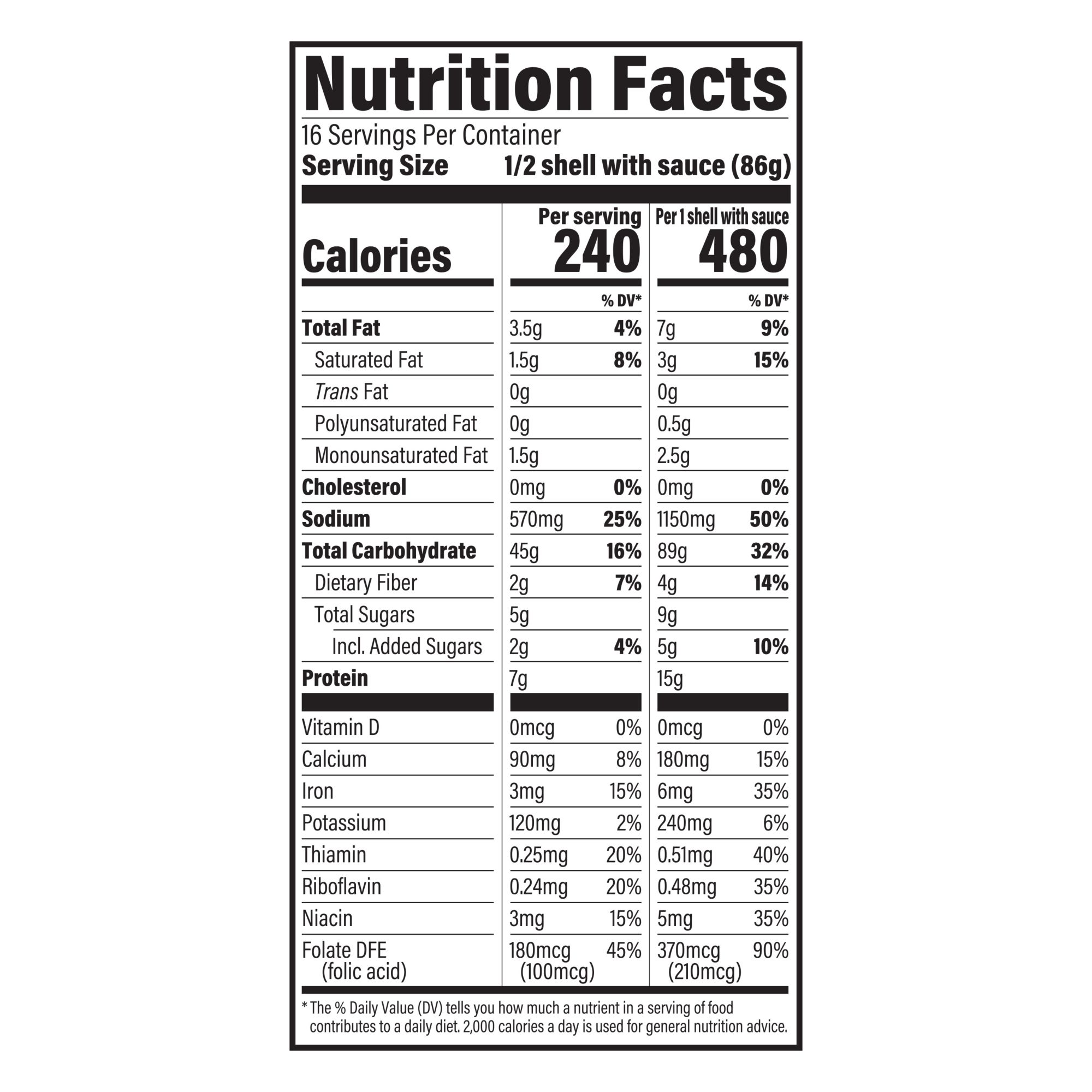 | Serving Size | 1/2 Shell |