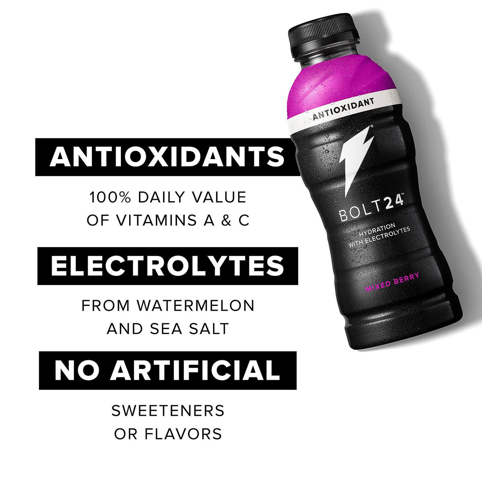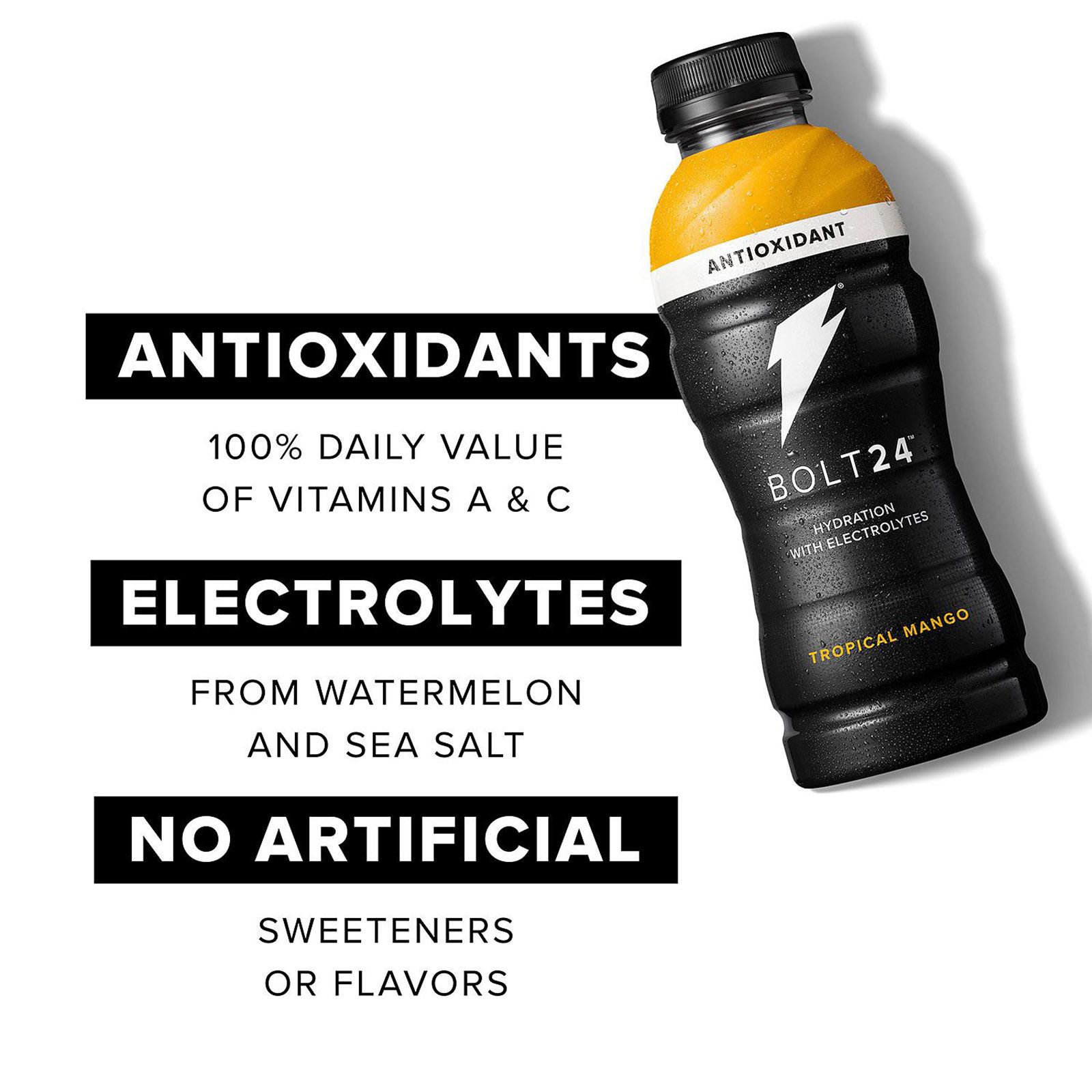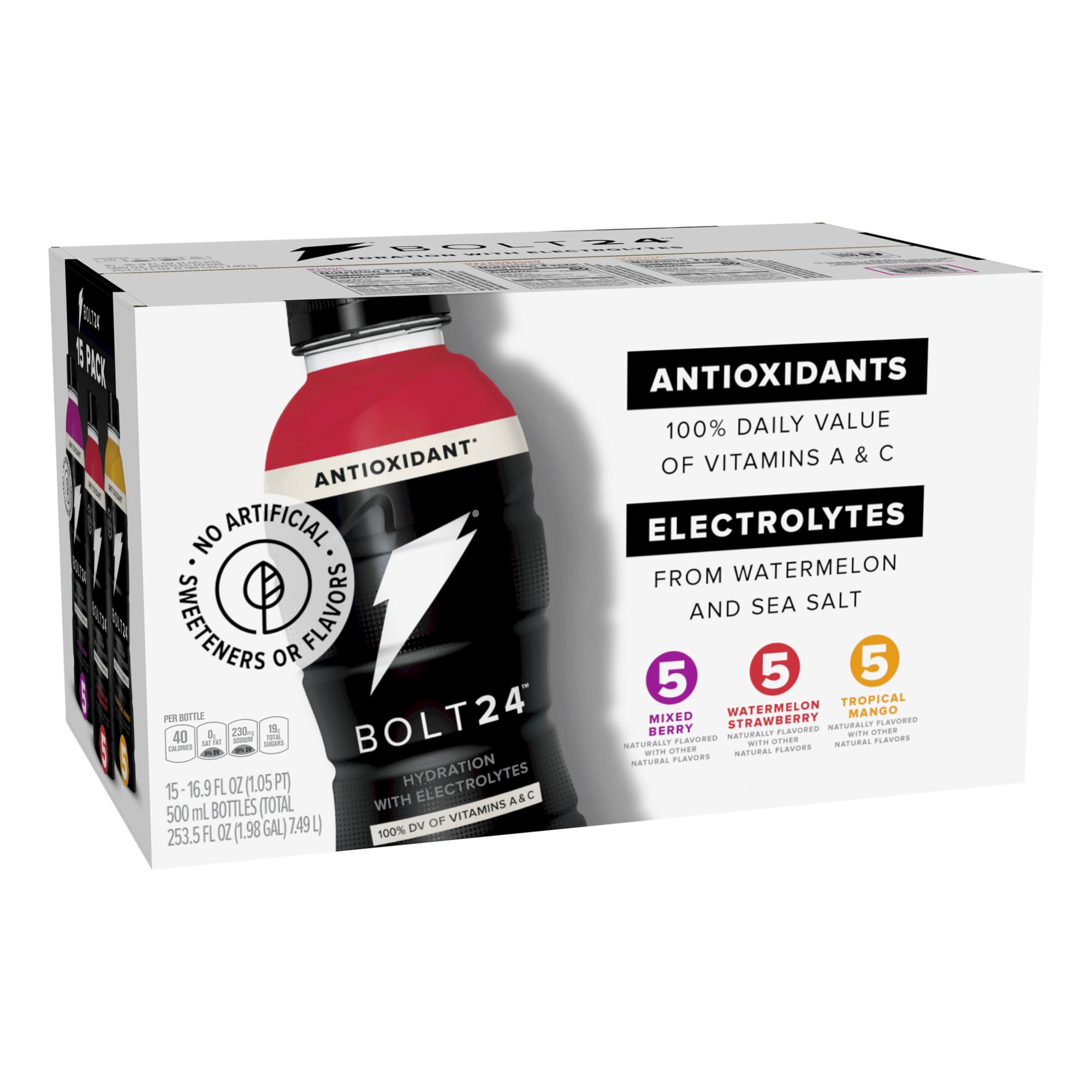 Because Gatorade knows athletes are athletes 24/7, they've created BOLT24 formulated with functional ingredients to provide advanced, all-day hydration for the 24/7 athlete off-the-field. BOLT24 is formulated with functional ingredients to provide all-day hydration. It delivers electrolytes from watermelon and sea salt, as well as 100% of the daily value of antioxidant vitamins A and C, and vitamins B3, B5 and B6 with no artificial sweeteners or flavors. From the makers of Gatorade, this BOLT24 variety pack is available in three flavors: Tropical Mango, Mixed Berry and Watermelon Strawberry.