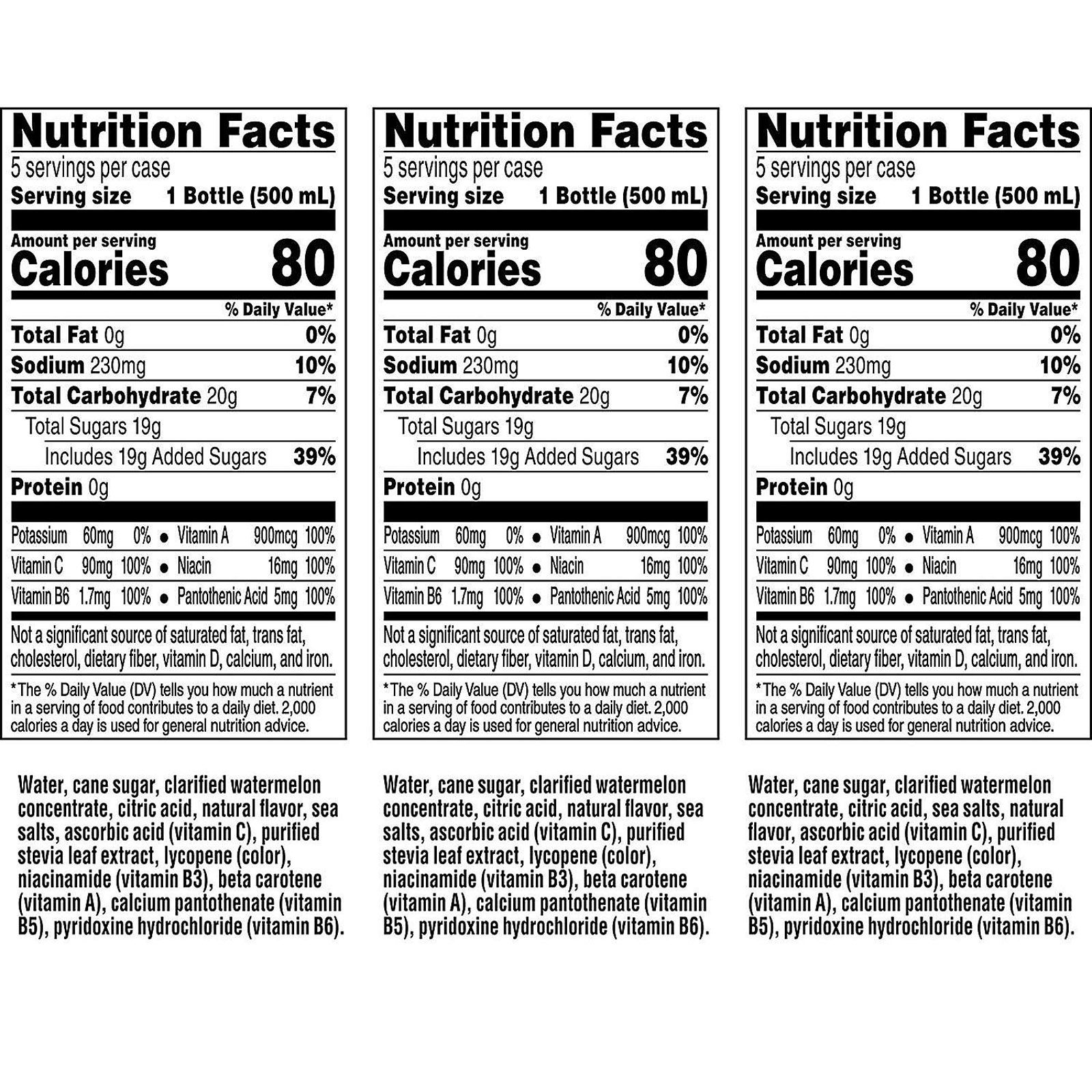 Includes five 16.9-oz. bottles each of Watermelon Strawberry, Tropical Mango, and Mixed Berry flavors
