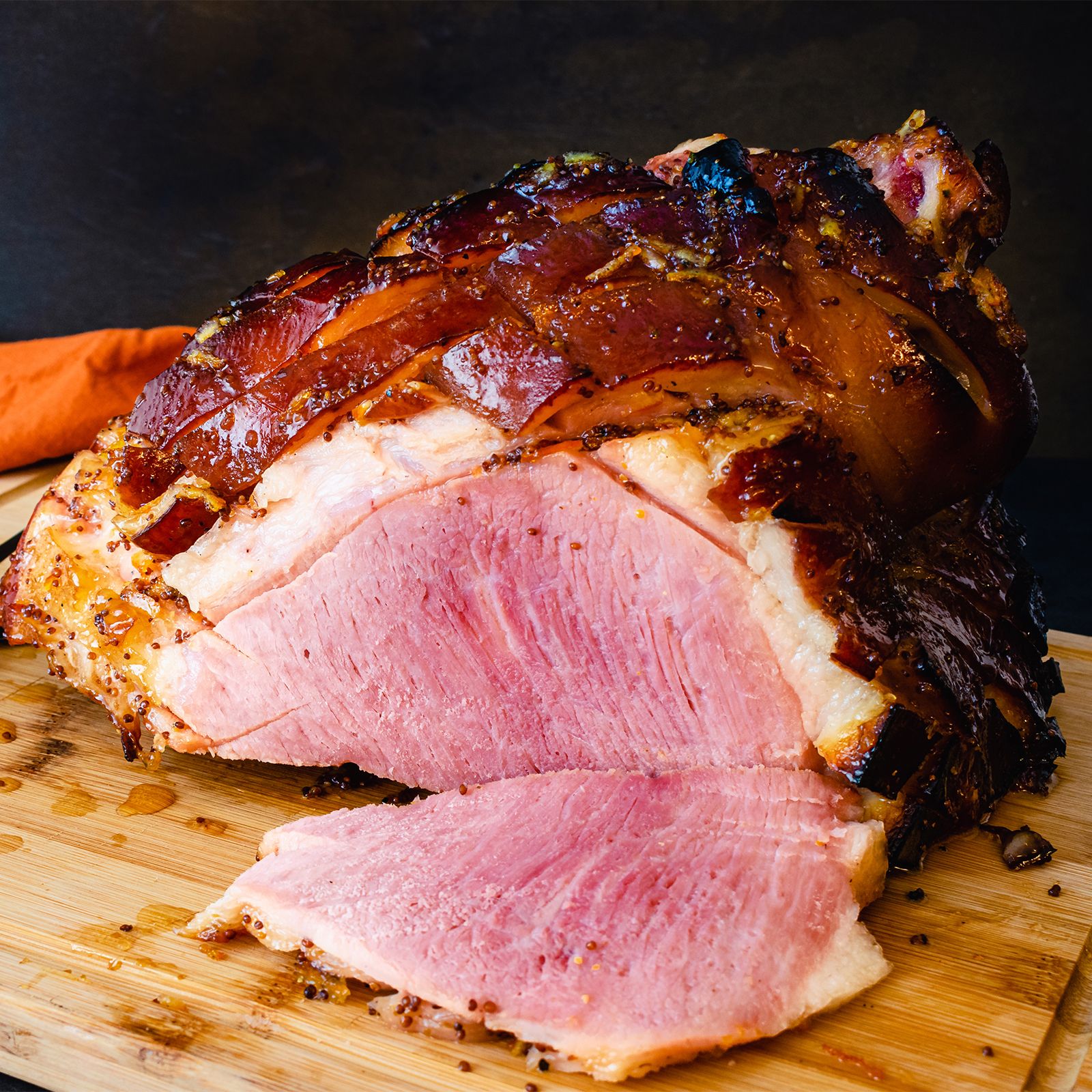Includes bone-in pork ham with skins, 15-18 lbs.