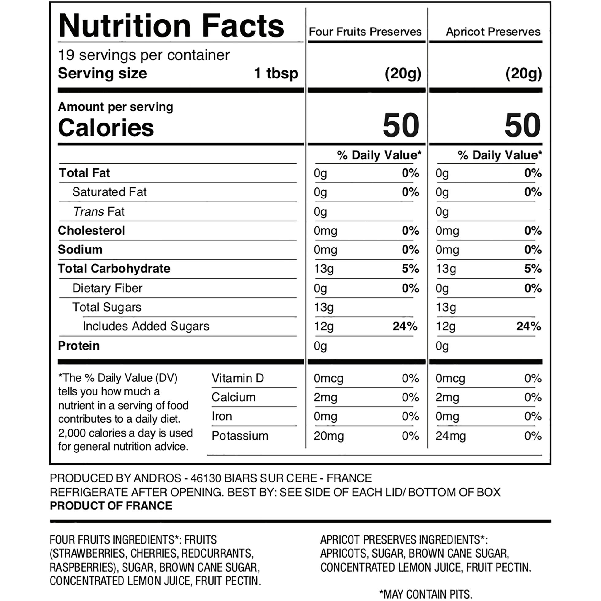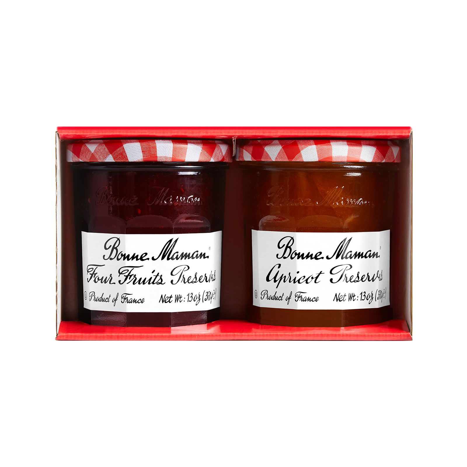 Four Fruits Preserves features chunks of real cherries, strawberries, redcurrants and raspberries. It’s the perfect fruit mixture to spread on bread, muffins or with classic savory pairings like cheese or nut butter. Why pick one of these favorite flavors when you can have all four. Bonne Maman Apricot Preserves glow with the orange-yellow luster of fresh, ripe apricots. Each jar is filled with large pieces of apricots making every bite a delicious treat. Brighten your breakfast when you spread it on toast, muffins, in a recipe or as part of a sauce.