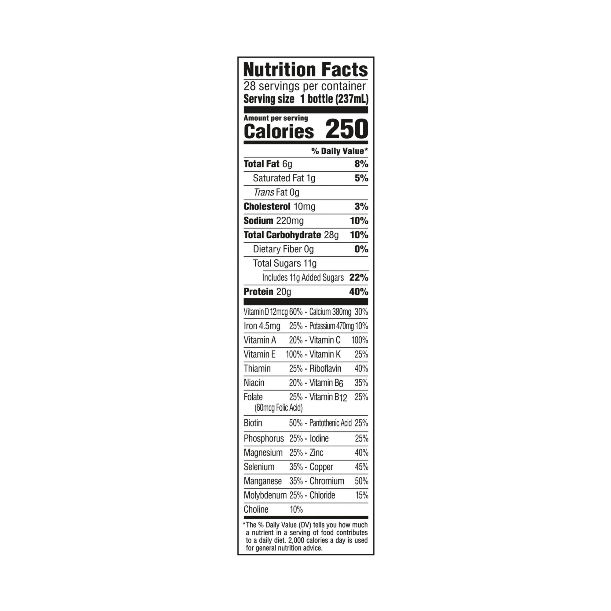 Includes chocolate protein shakes, 28 ct.