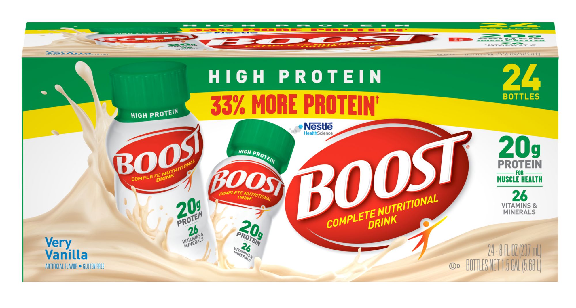 Protein is a building block of muscle, necessary to build and repair tissue. Delicious Boost High-Protein Drinks are a great source of protein your body needs to maintain muscle. Each 8 fl. oz. bottle provides 15g of high-quality protein (30% of the recommended daily value), plus 26 vitamins and minerals that can help you be your best.