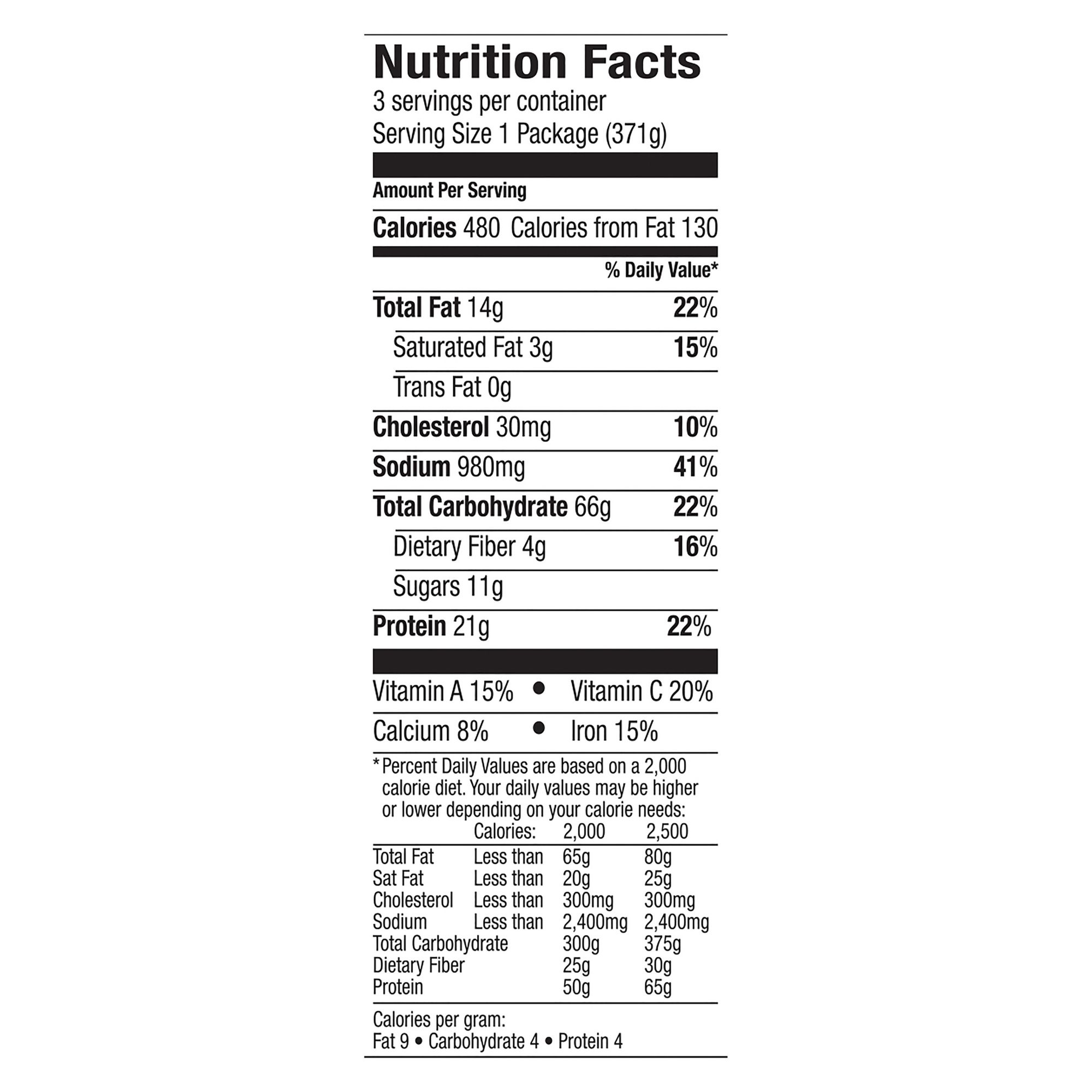 Ingredients: Water, Enriched Macaroni Product (Water, Durum Wheat Semolina [Enriched With Niacin, Ferrous Sulfate, Thiamine Mononitrate, Riboflavin, Folic Acid]), Cooked Breaded Chicken Breast Patty With Rib Meat (Chicken Breast With Rib Meat, Water, Enriched Wheat Flour [Wheat Flour, Wheat Starch, Niacin, Reduced Iron, Thiamine Mononitrate, Riboflavin, Folic Acid], Enriched Bleached Wheat Flour [Wheat Flour, Wheat Starch, Niacin, Reduced Iron, Thiamine Mononitrate, Riboflavin, Folic Acid], Contains 2% Or Less Of Isolated Soy Protein, Salt, Corn Starch, Dextrose, Modified Food Starch, Tapioca Dextrin, Wheat Gluten, Sodium Phosphates, Seasoning [Yeast Extract, Salt, Soy Sauce Solids {Soybeans, Wheat, Salt}, Sugar, Maltodextrin {Corn}, Chicken Powder, Flavor, Vegetable Oil, Chicken Broth, Tapioca Starch, Thiamine Hydrochloride, Lactic Acid, Citric Acid, Chicken Fat], Soybean Oil, Garlic Powder, Spice, Modified Corn Starch, Leavening [Sodium Aluminum Phosphate, Sodium Bicarbonate], Sodium Bicarbonate, Extractives Of Paprika, Yeast, Malt Syrup), Tomato Paste, Topping Blend (Imitation Mozzarella [Water, Palm Oil, Modified Potato Starch, Rennet Casein, Modified Corn Starch, Sodium Citrate, Salt, Sodium Phosphate, Natural Flavor, Carrageenan, Lactic Acid, Artificial Color], Mozzarella [Pasteurized Cultured Reduced Fat Milk, Salt, Enzymes]), Contains Less Than 2% Of Sugar, Canola Oil, Modified Food Starch, Granulated Onion, Granulated Garlic, Salt, Spices, Xanthan Gum, Yeast Extract.