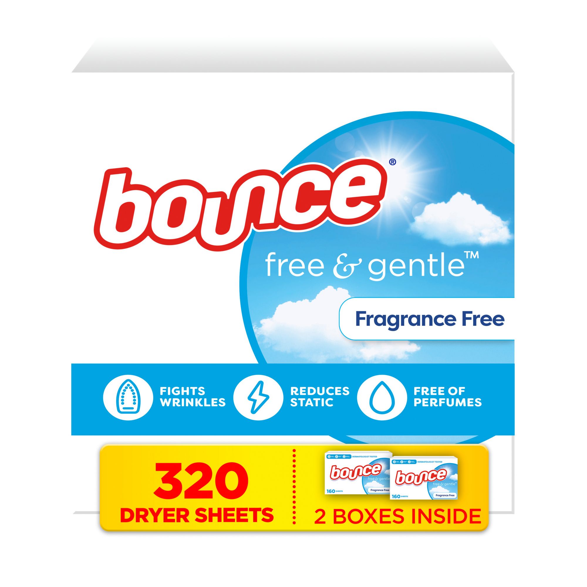 Bounce Free & Gentle Dryer Sheets - Unscented, 320 ct.