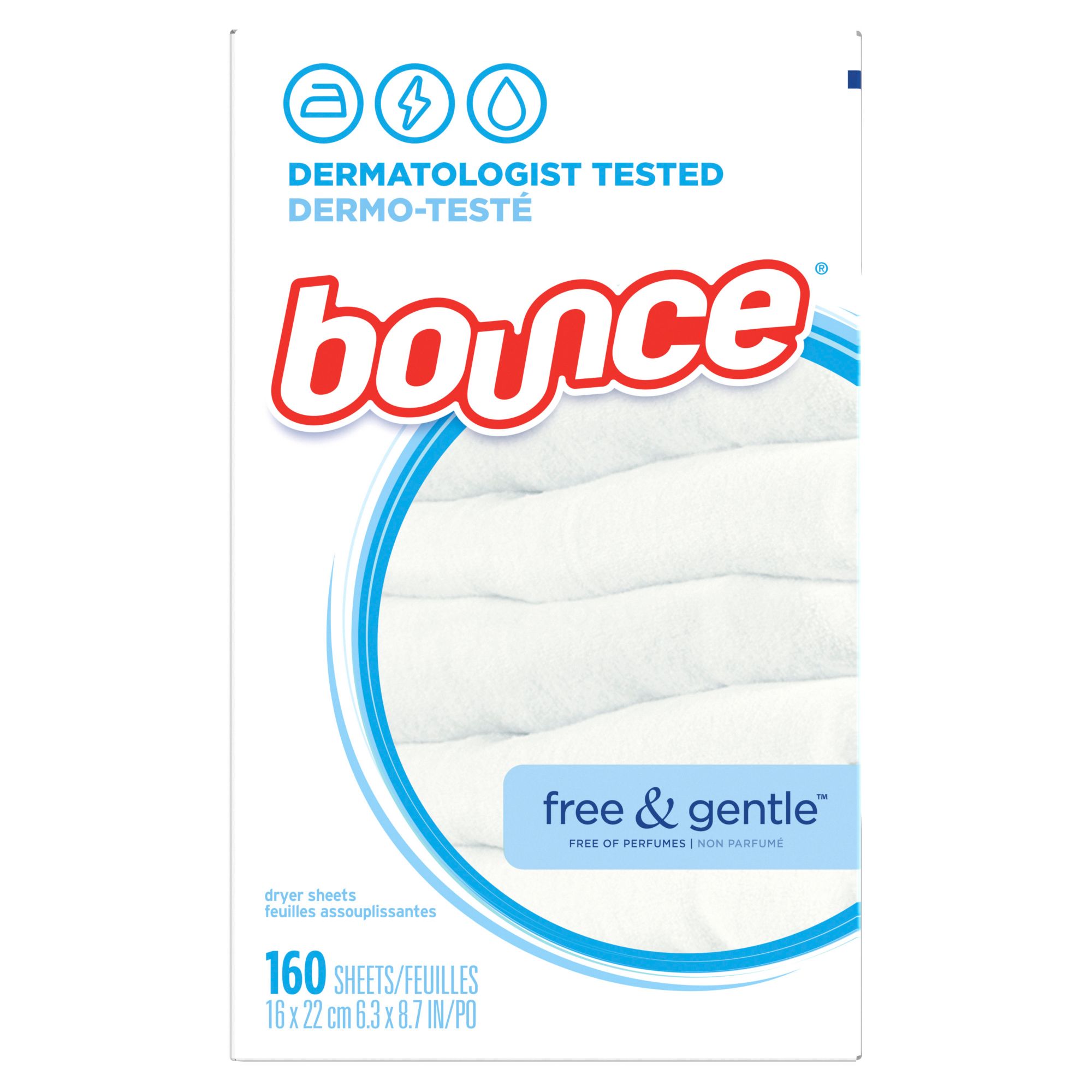 Sensitive skin? Bounce Free and Gentle gets that and wants to make sure your dryer sheets leave you feeling and looking good. Bounce Free and Gentle Dryer Sheets are gentle on your skin but tough on static and wrinkles. Dermatologist-tested, hypoallergenic, and free of any dyes or perfumes, you can rest assured that Bounce Free and Gentle Dryer Sheets are just right for your sensitive skin. Bounce Dryer Sheets help prevent static build up that occurs in the dryer so you can look and feel your best.