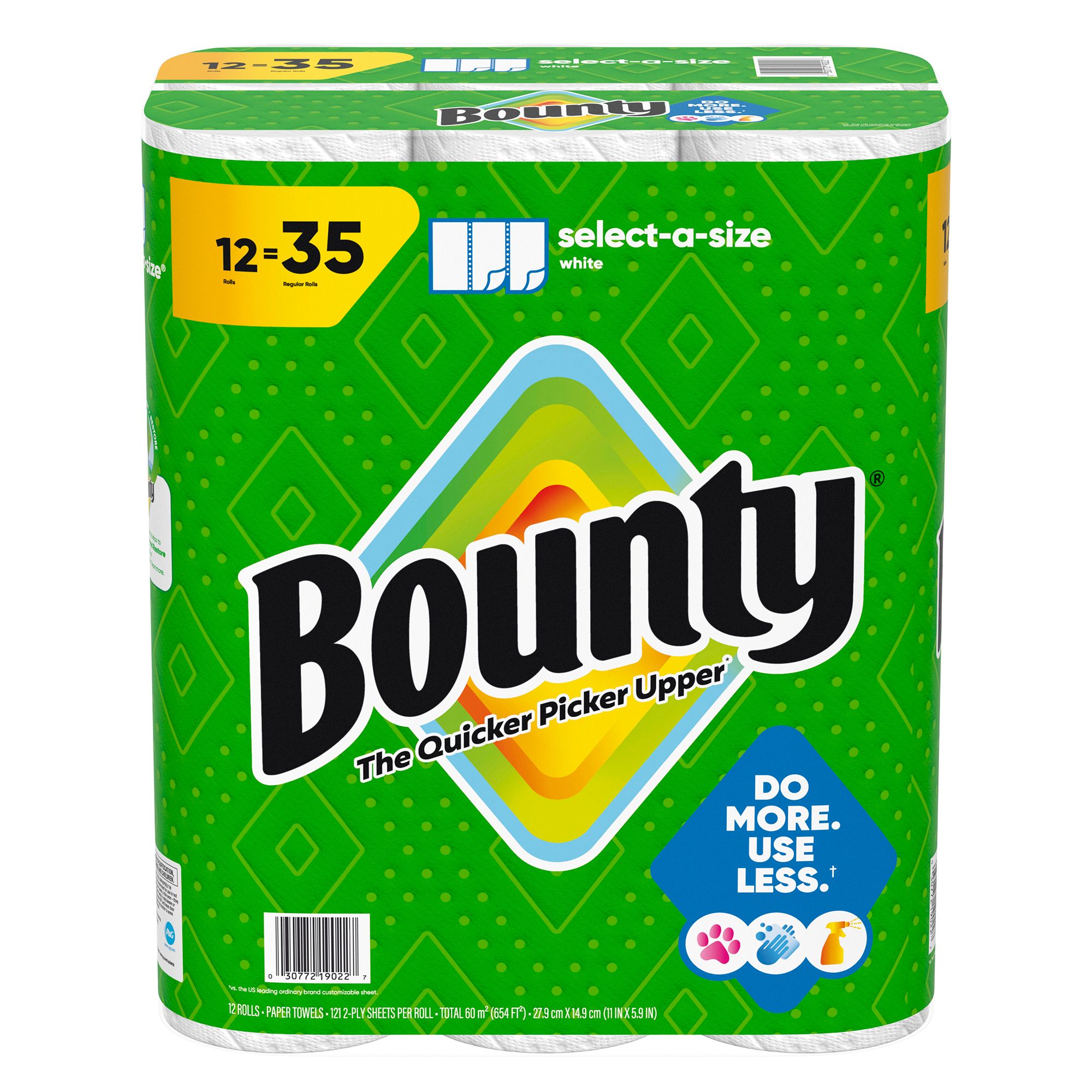 Pack contains 12 rolls of white Bounty Select-A-Size paper towels