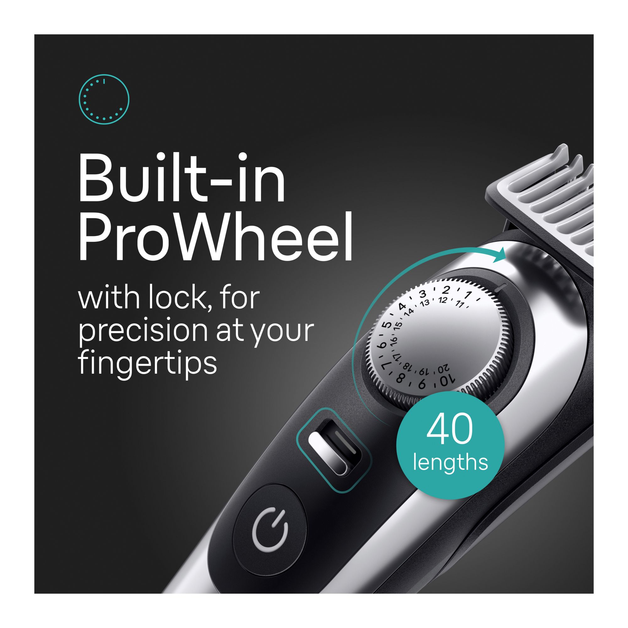 Unlimited versatility, professional precision: the ProWheel features 40 length settings in 0.02" steps and ProLock to lock your selection for no mistakes, plus beard and hair combs for lengths 0.5 mm - 20 mm