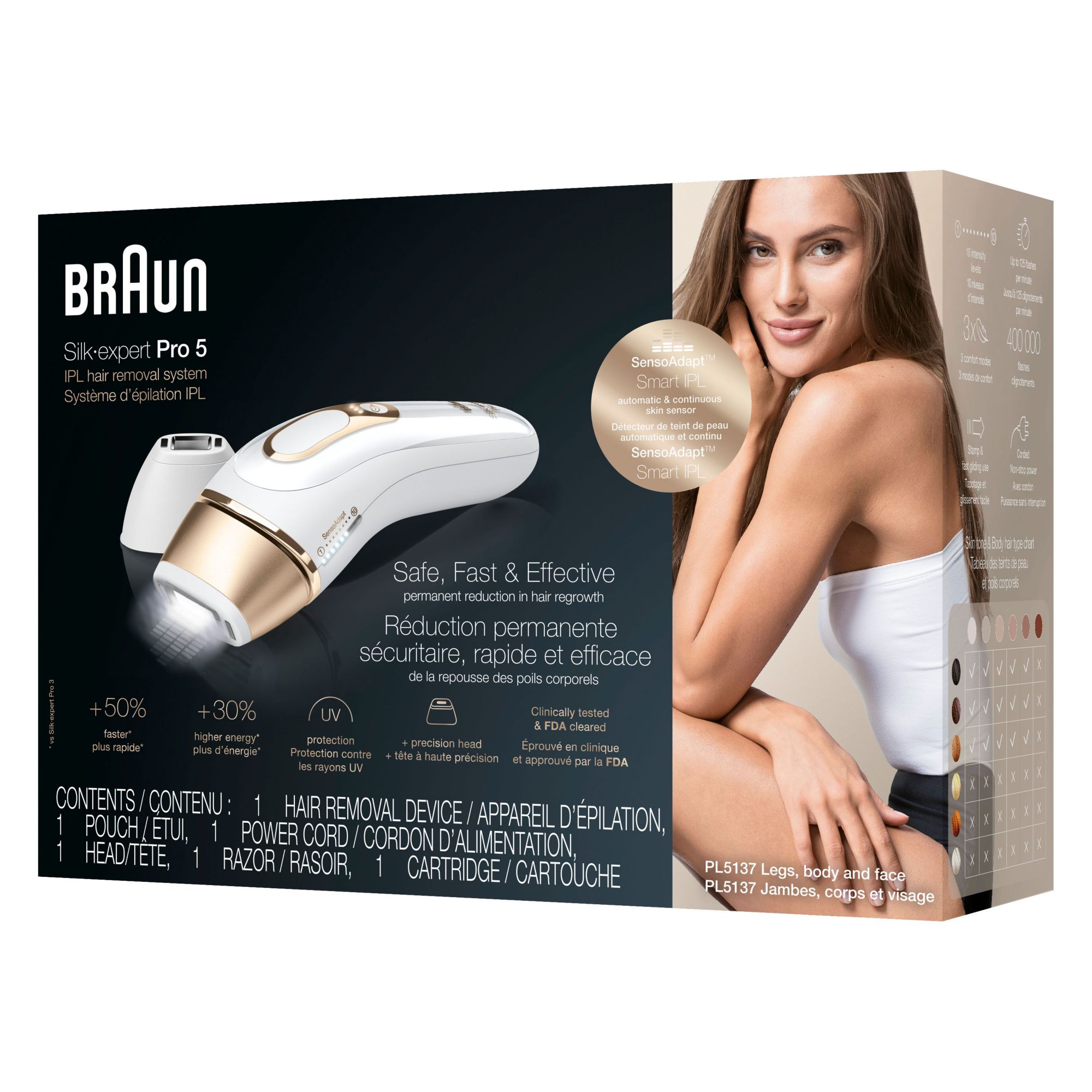 Braun Silk expert Pro 5 IPL Hair Removal System, PL5137 with Venus Swirl Razor, FDA Cleared - White and Gold