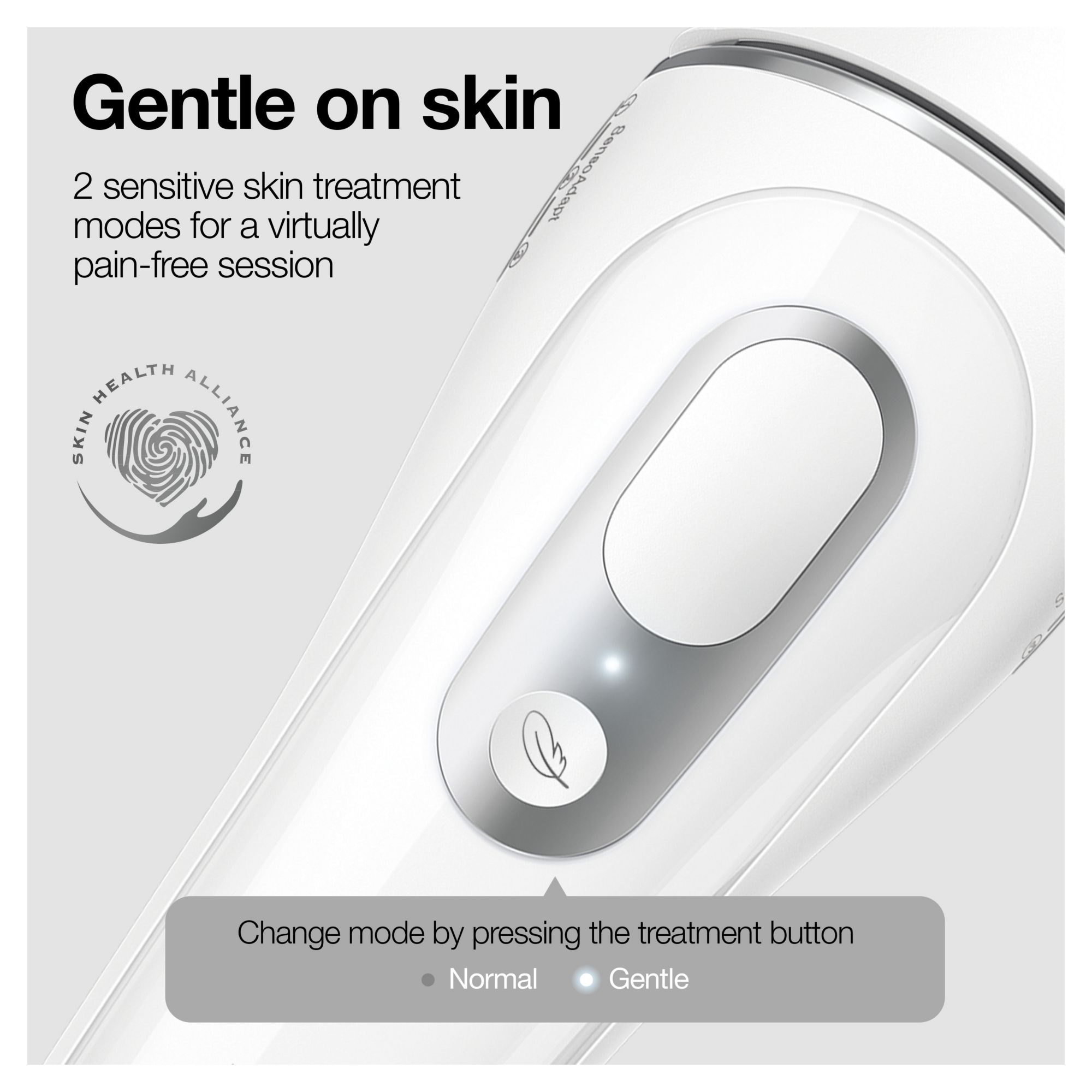 2 sensitive modes: at the touch of a button, switch between modes (normal and gentle). Use sensitive skin mode for a virtually pain-free session, ideal for first-time users.